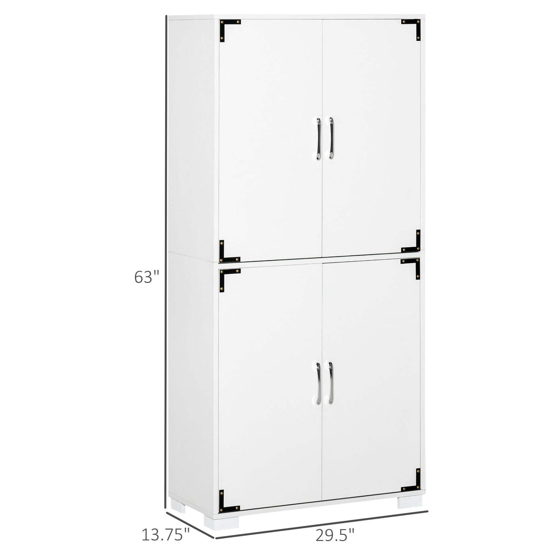 Let the irresistible charm of this food pantry cabinet from HOMCOM bring beauty into your home this season. The pure white with vintage metal hardware evokes a rustic charm in your home, while the 4-doors with four shelves offer ample storage to store your daily accessories. It is a compact solution to a small bedroom, entryway, and living room. Have a place for all your gathering clutter with this storage cabinet with doors and shelves from HOMCOM.