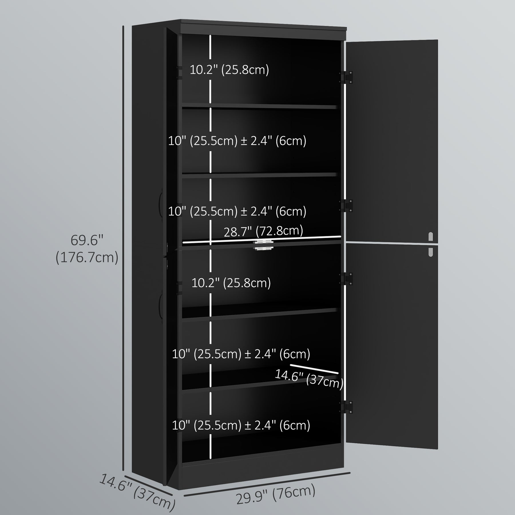 - • Overall Dimension: 30"L x 15.75"W x 69.5"H (76 x 40 x 176.7cm)