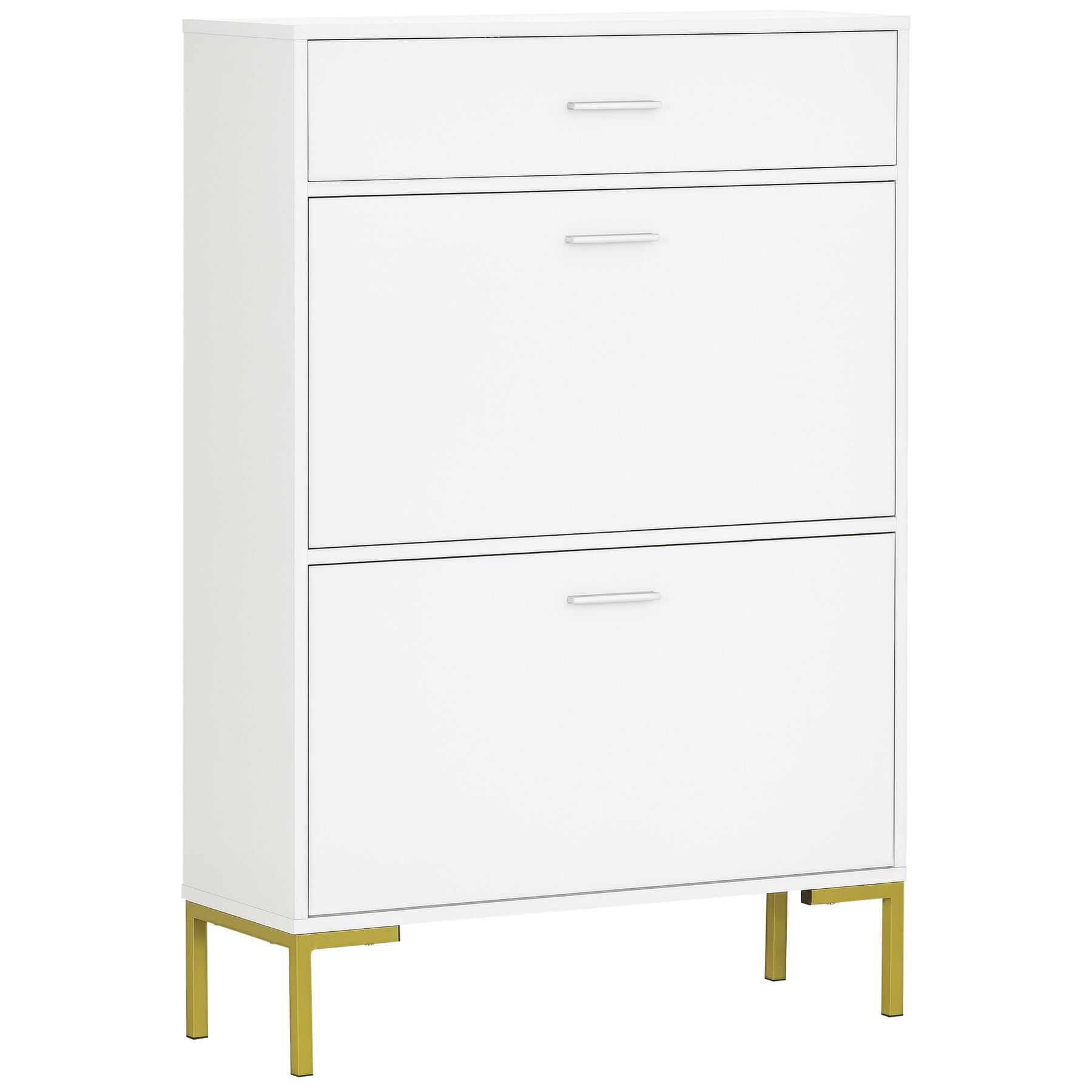 The shoe cabinet for the entrance is a must-have piece of furniture for every family, but only some of them can meet your specific needs. This HOMCOM shoe organizer is specially designed for you. Features two drop-down doors with adjustable shelves for different shoe storage needs. You can also store your items in the drawer and display decorations on the countertop. The anti-tip design makes this white shoe cabinet suitable for homes with children and pets. You won't regret buying it.