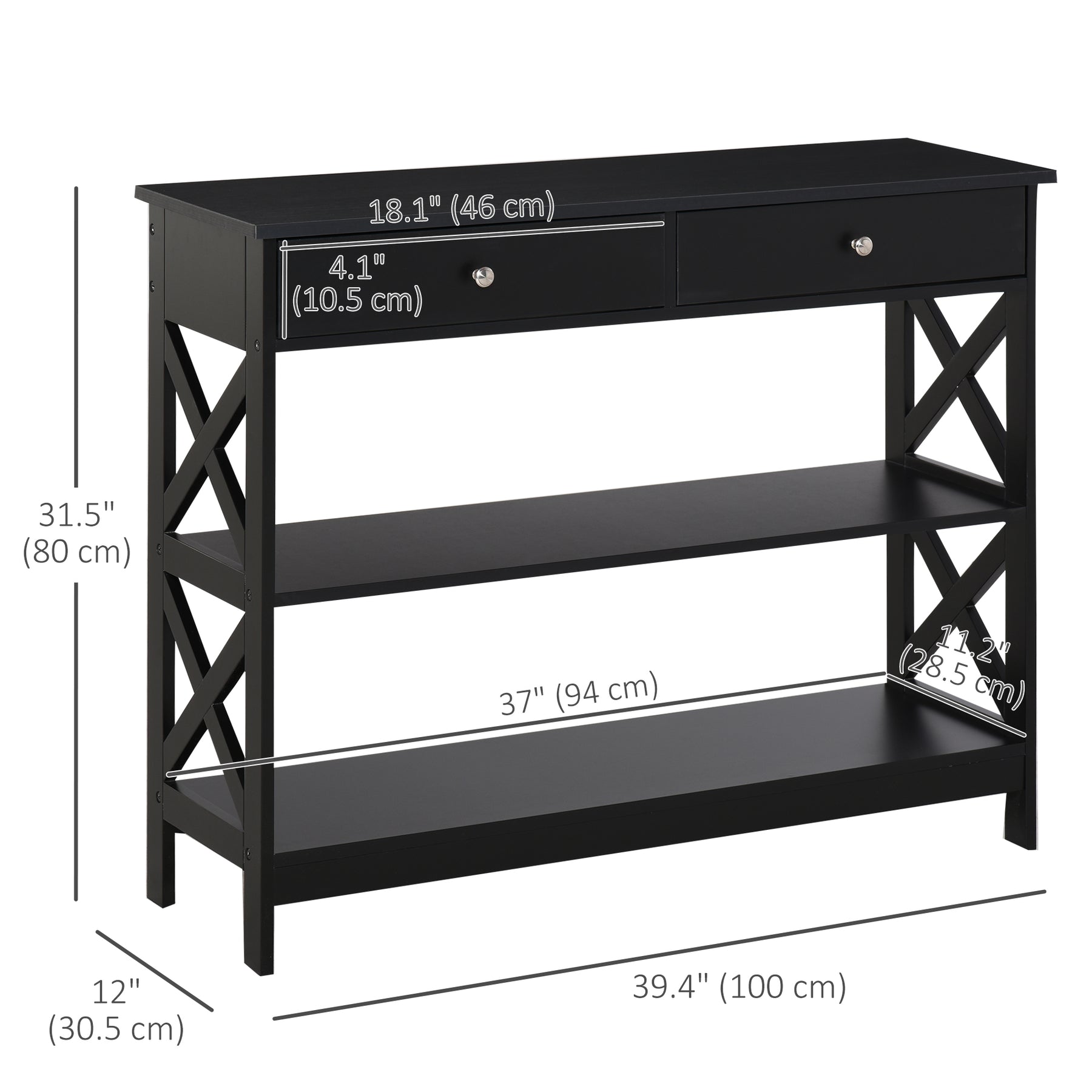 Whether you live in a single room apartment or a luxury villa, whether you are the host or the guest, our console table makes an immediate impression when you enter the room. Solid structure with anti-toppling device, this frame is sturdy and reliable for years to use. Crafted into an elegant design to blend in its surroundings with ease. Features 2 pull-out drawers and 2 shelves for plenty of storage, with an large tabletop for photos album and ornaments. Do not hesitate and take it home!
