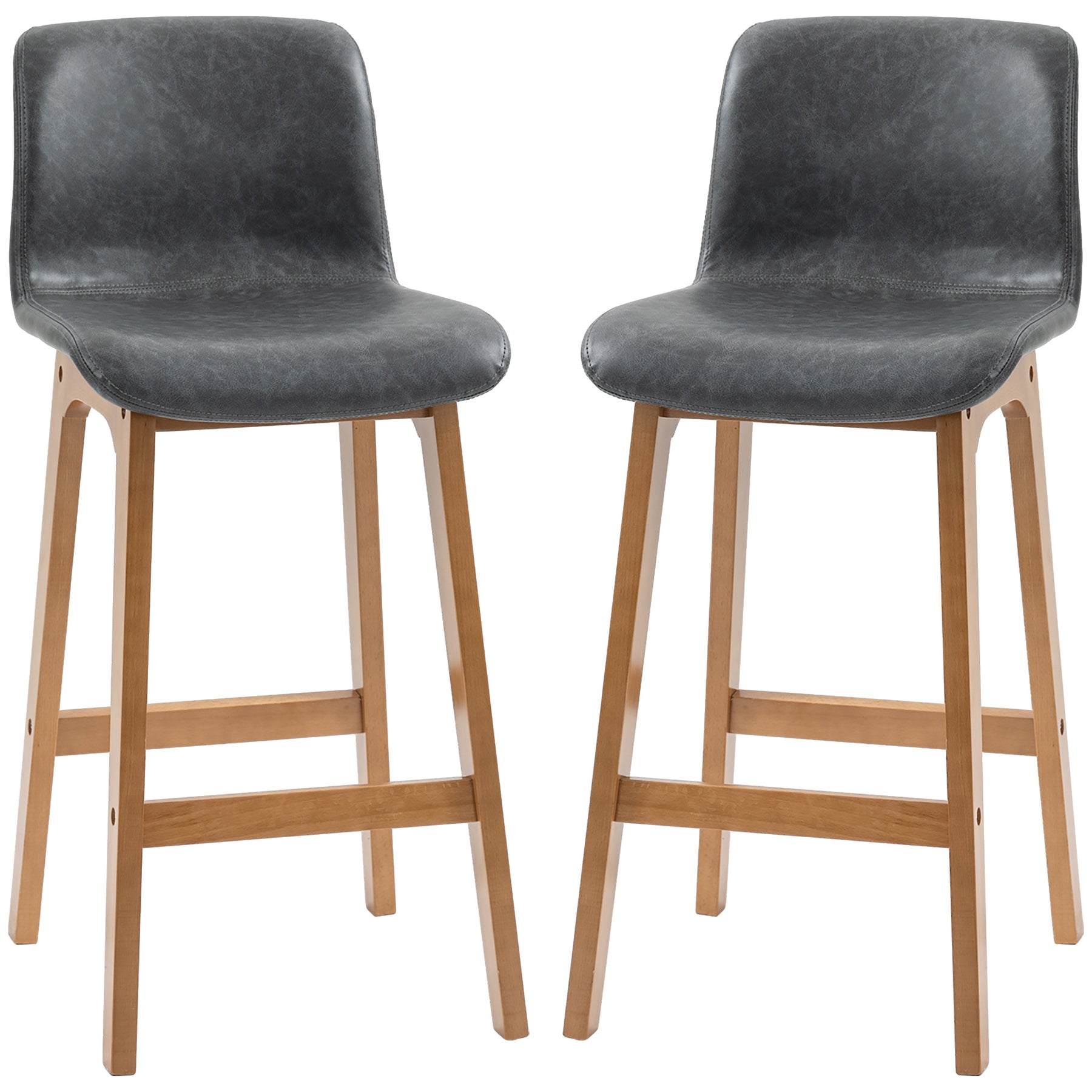 Let sleek and executive style extend beyond the office with the counter chair set from HOMCOM. Designed as a set of 2 to create a cohesive look in your home, each bar stool features a solid beech wood frame crafted into a tall design with a footrest bar at the bottom. The kitchen stools with backs are filled with foam for comfort, and faux leather upholstery adds a luxurious finishing touch.