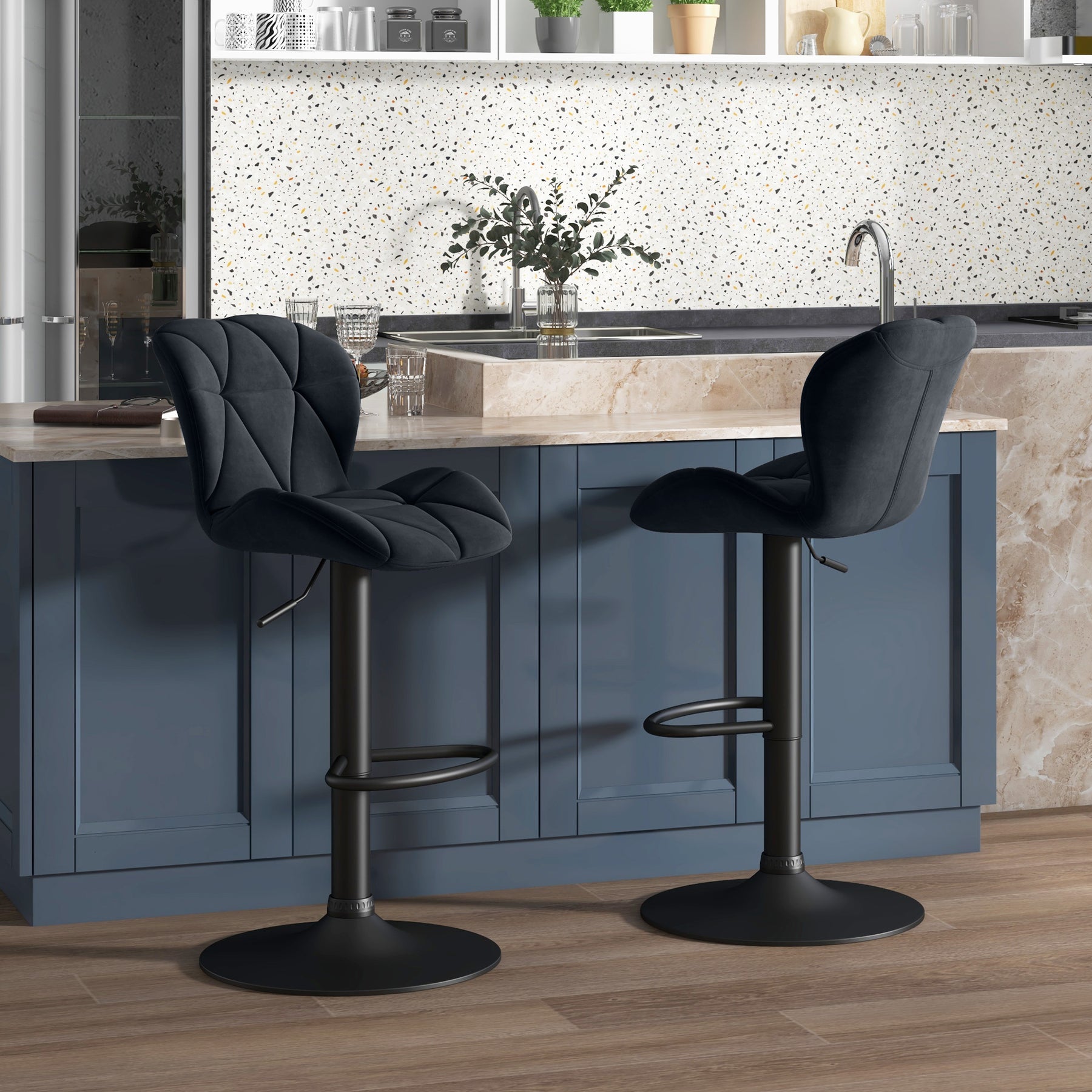 Inject beautiful style into your kitchen counter or bar dining area with the set of two bar stools from HOMCOM. The soft upholstery of the island stools serves up high style. The seat of the adjustable stool are filled with soft sponge to relax the body. Curved back and armless design supports the body whilst giving your body freedom. With the large round base, which is made from metal, this counter stools set of 2 keeps upright and steady when in use.