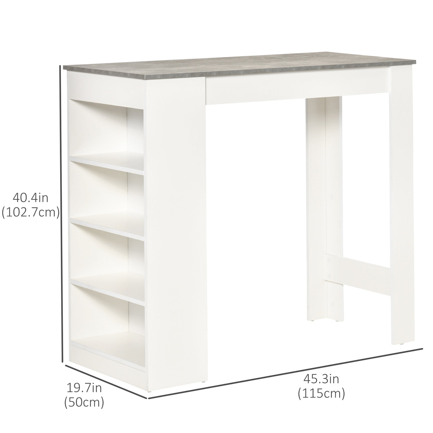 This HOMCOM modern design kitchen table takes up less room, is tall enough for mingling, and large enough to work at while standing. 4-tier open shelf is ideal for organizing your barware, utensils and other sundries. Our pub table is ideal for acting as a buffet table or as a location to create drinks for guests, as well as for enjoying your morning coffee or supper with the family.