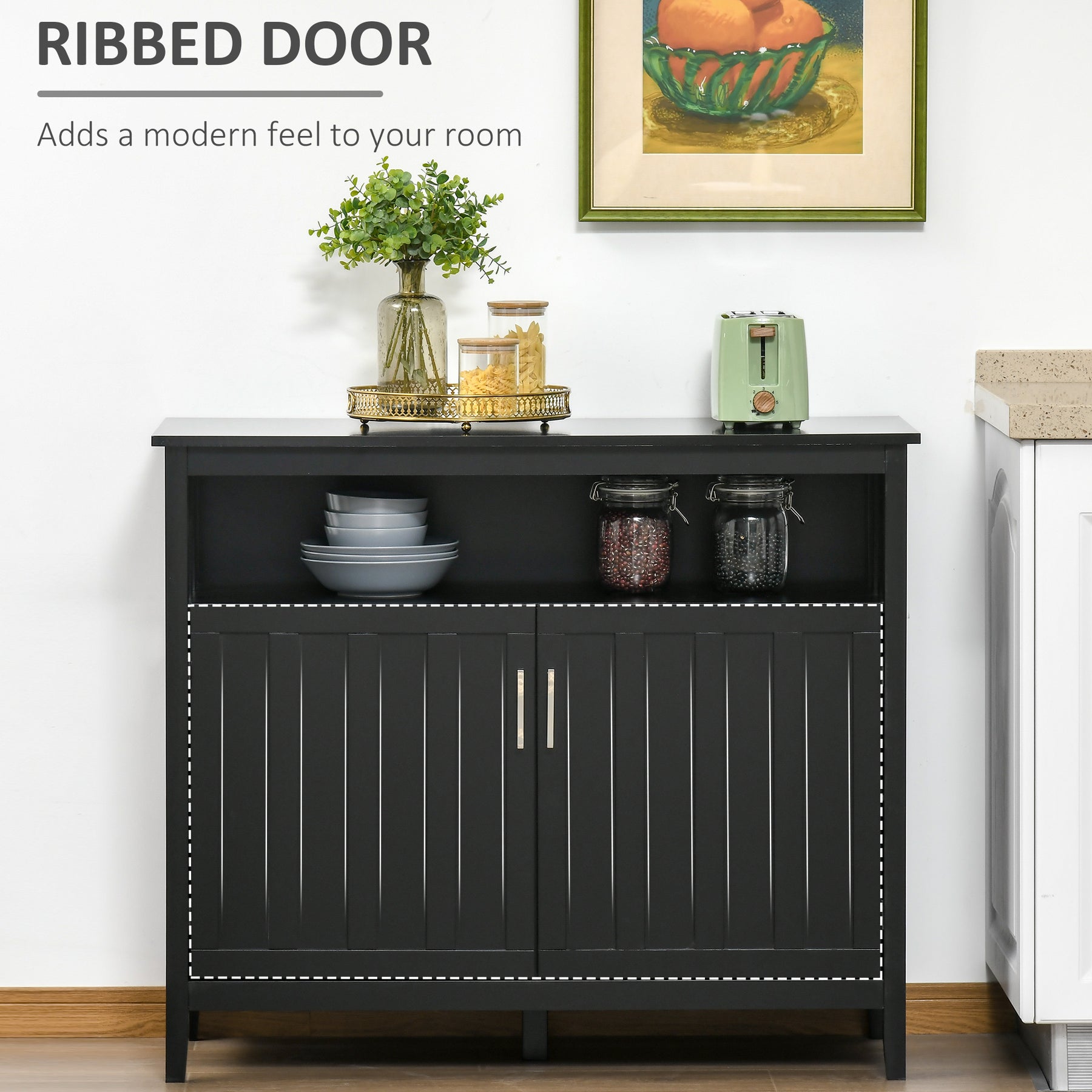 With this sideboard cabinet from HOMCOM, you can put an end to disarray and tuck clutter away. The moulding on the doors adds a modern touch to your living space, and two cabinets provide plenty of storage space for your daily accessories and utensils. With two adjustable shelves that move to meet your needs, you can personalise your storage space.
