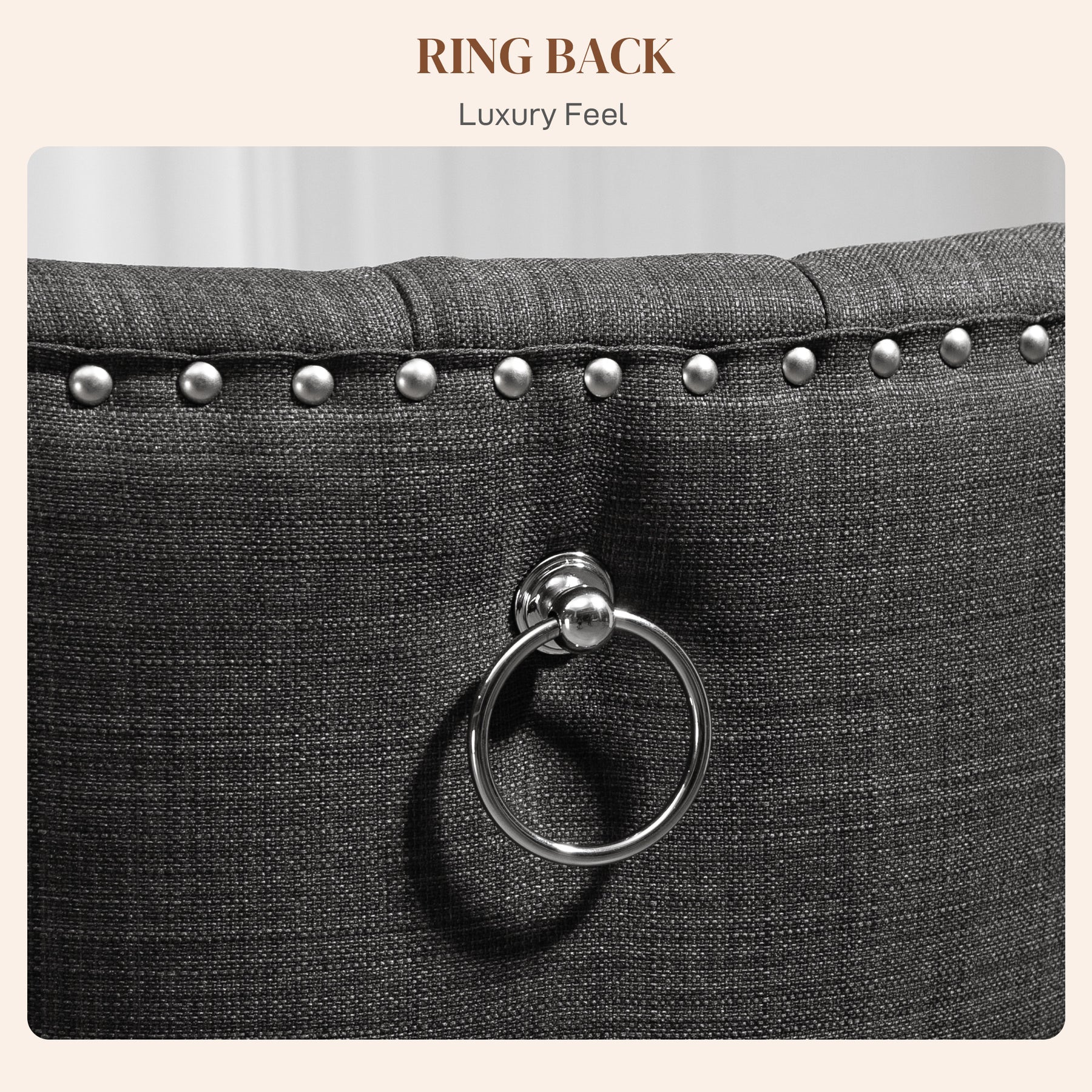 - • Features a tufted high back and thick upholstered seat with nailhead trim for superior comfort