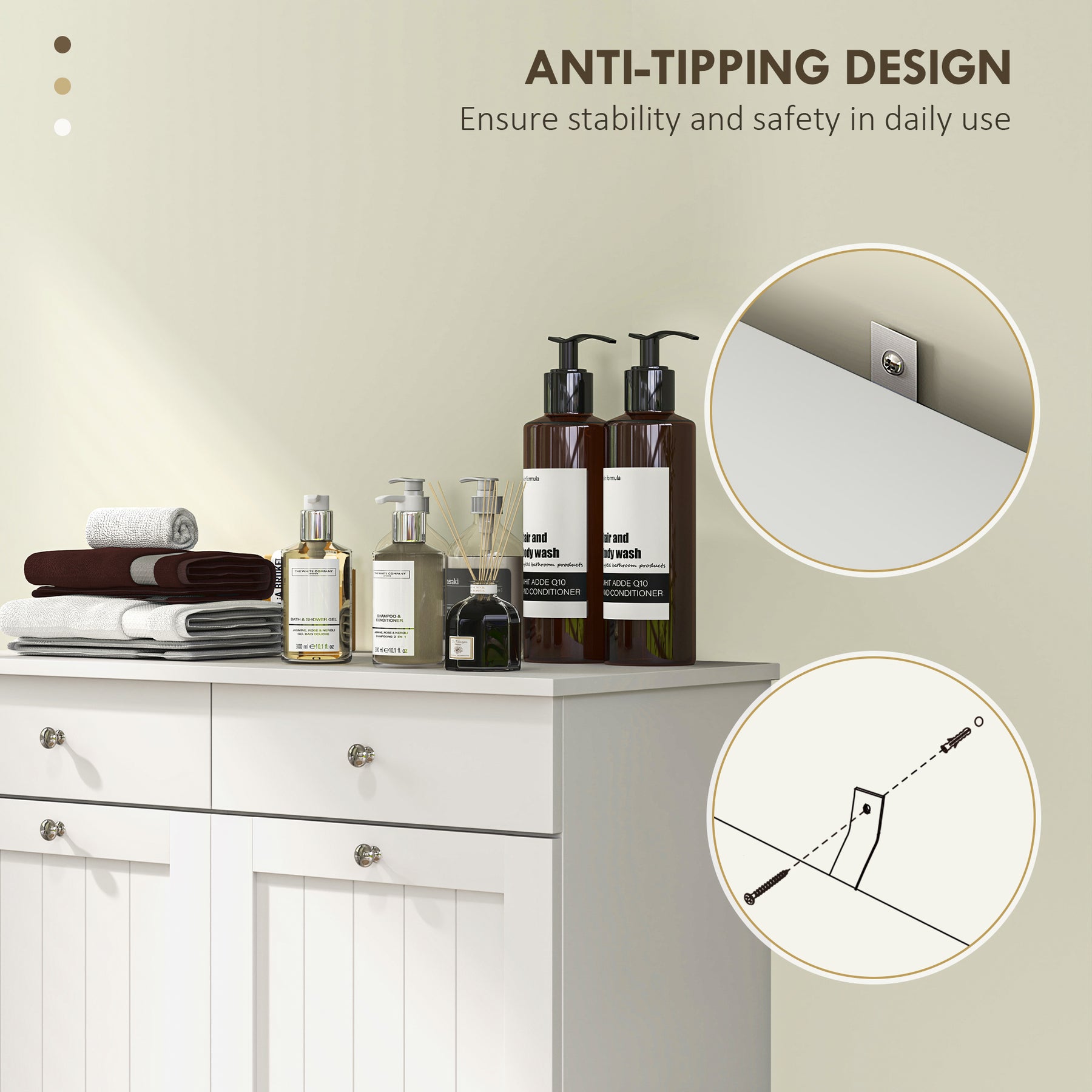 - • Anti-tipping design ensures stability and safety