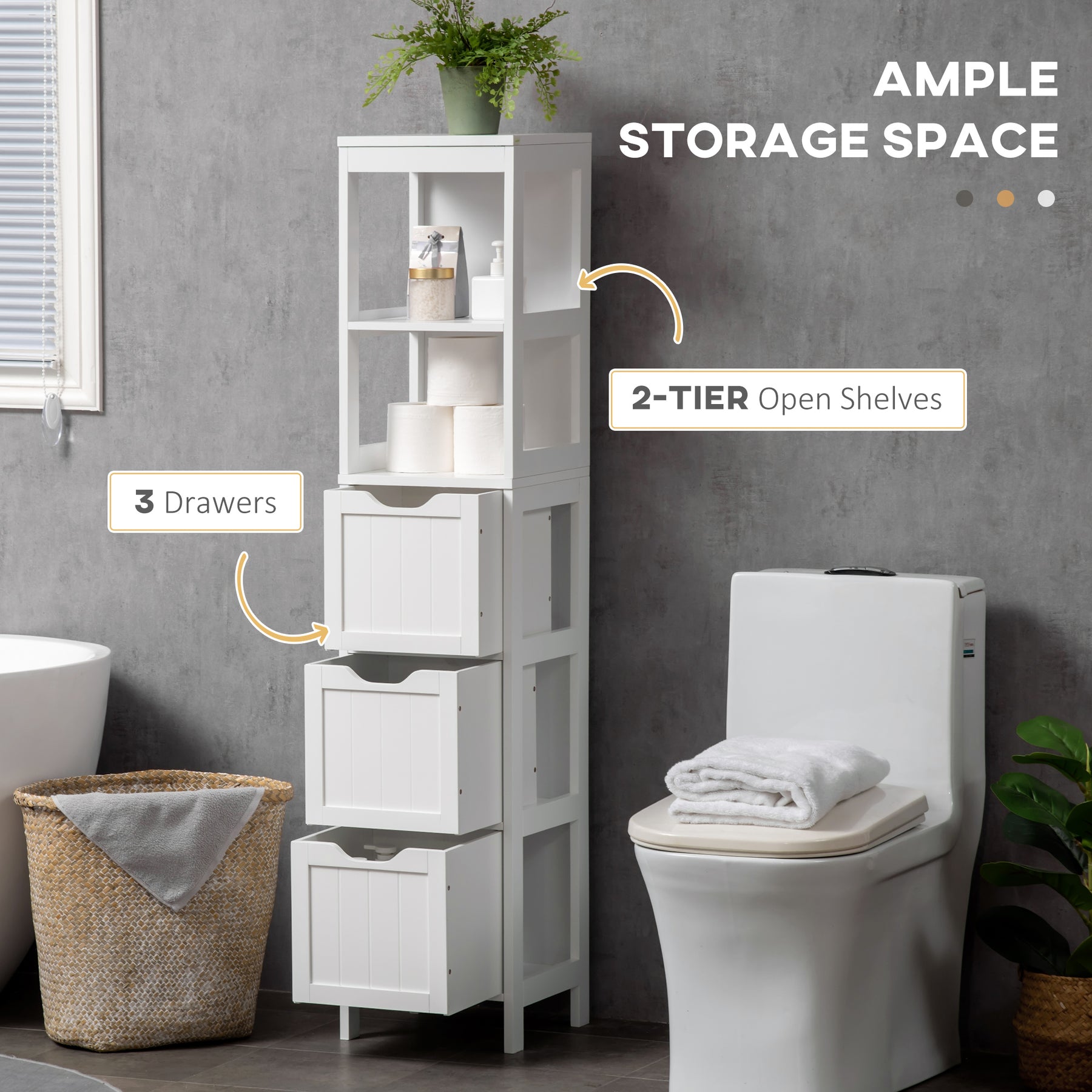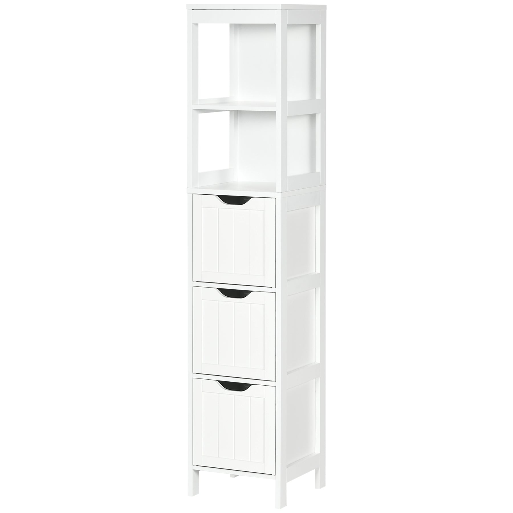 Maximize space and minimize clutter with this modern bathroom cabinet organizer from Kleankin. Its retro design makes it great for the bathroom, kitchen, living room, and more. Its MDF ensures sturdiness and offers plenty of space to store and organize towels and toiletries. This towel cabinet for the bathroom is excellent to use in shared housing. In addition, it is finished with an anti-tip device at the rear to prevent it from tipping forward.