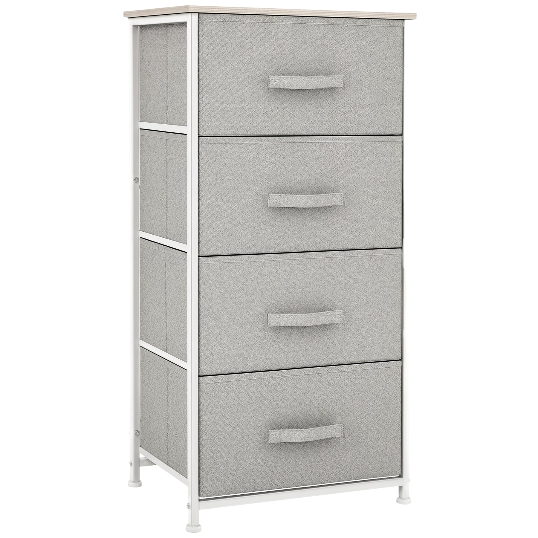- • Top and 4 removable linen fabric drawers offer storage for ample household items