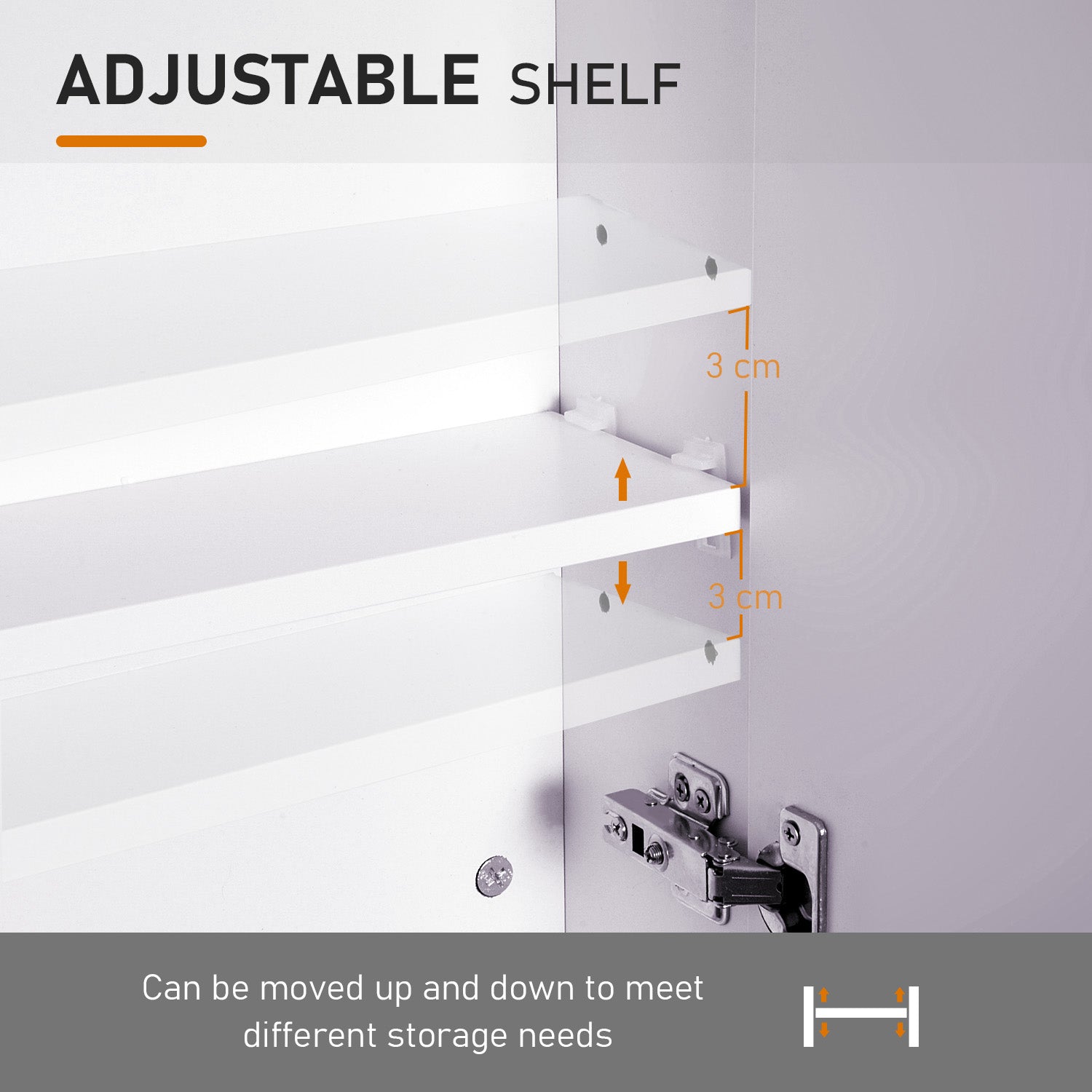 This stylish wall mounted mirror cabinet is a great necessity for any bathroom. Made of firm MDF and designed with double mirrored doors, it provides great storage space for your daily essentials. With an adjustable shelf, it can accommodate most articles you have. This HOMCOM medicine cabinet is absolutely a great solution for any bathroom.
