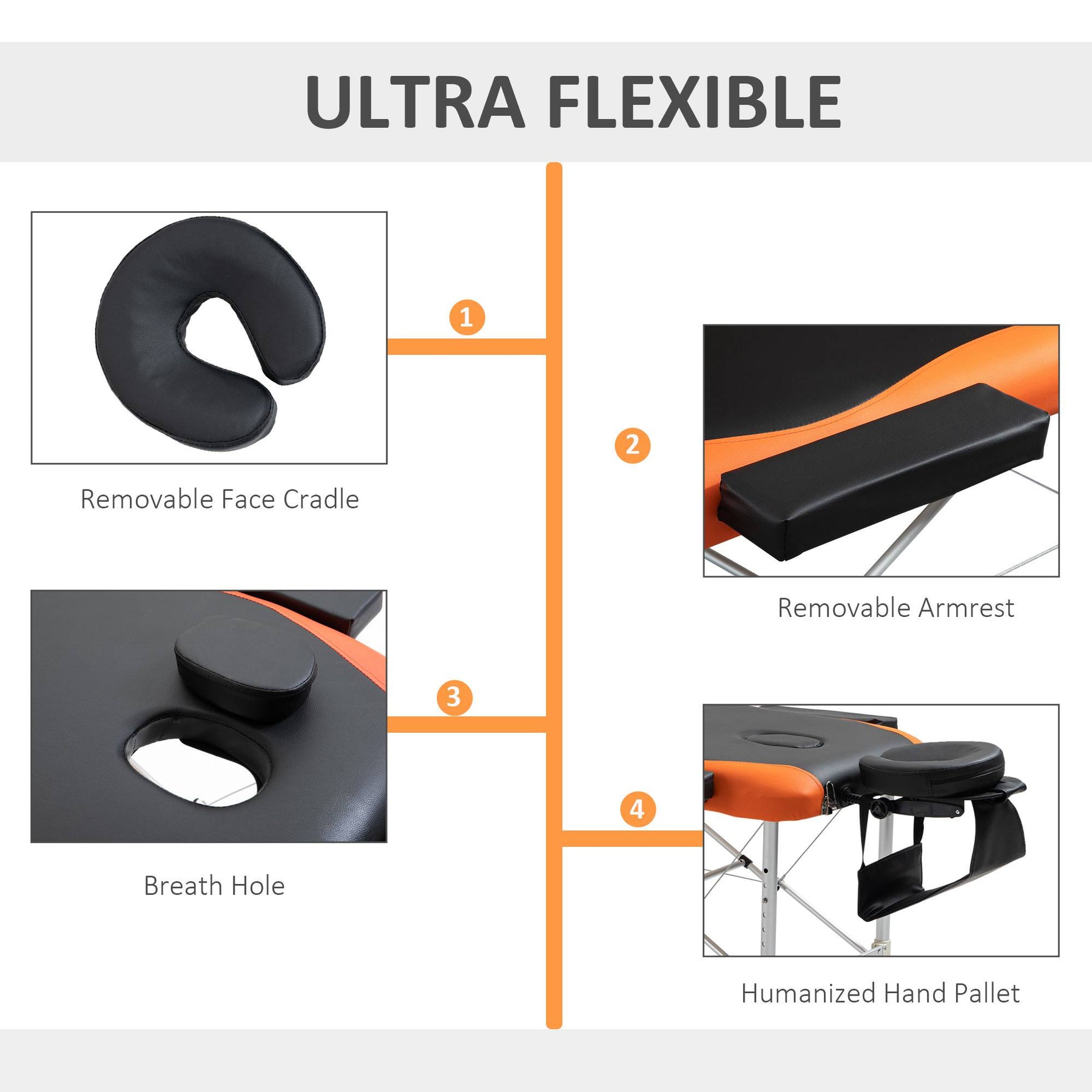 - • Removable and adjustable face cradle