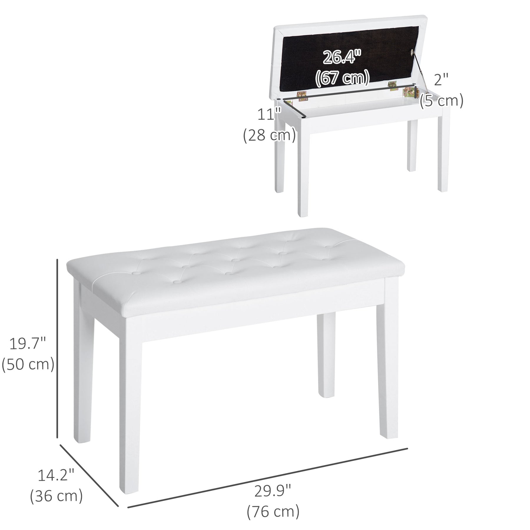 Whether you'e playing a solo or a duet let HOMCOM's padded piano bench make your performance comfortable, stylish, and unforgettable. This bench is built on a solid wood frame with sturdy, durable legs, and is topped with a smooth faux leather padded cushion that will allow you to focus all of your attention on tickling the ivories. With a lightweight design this bench is easy to move, transport, and store, and is perfect to travel with as a professional performance bench.