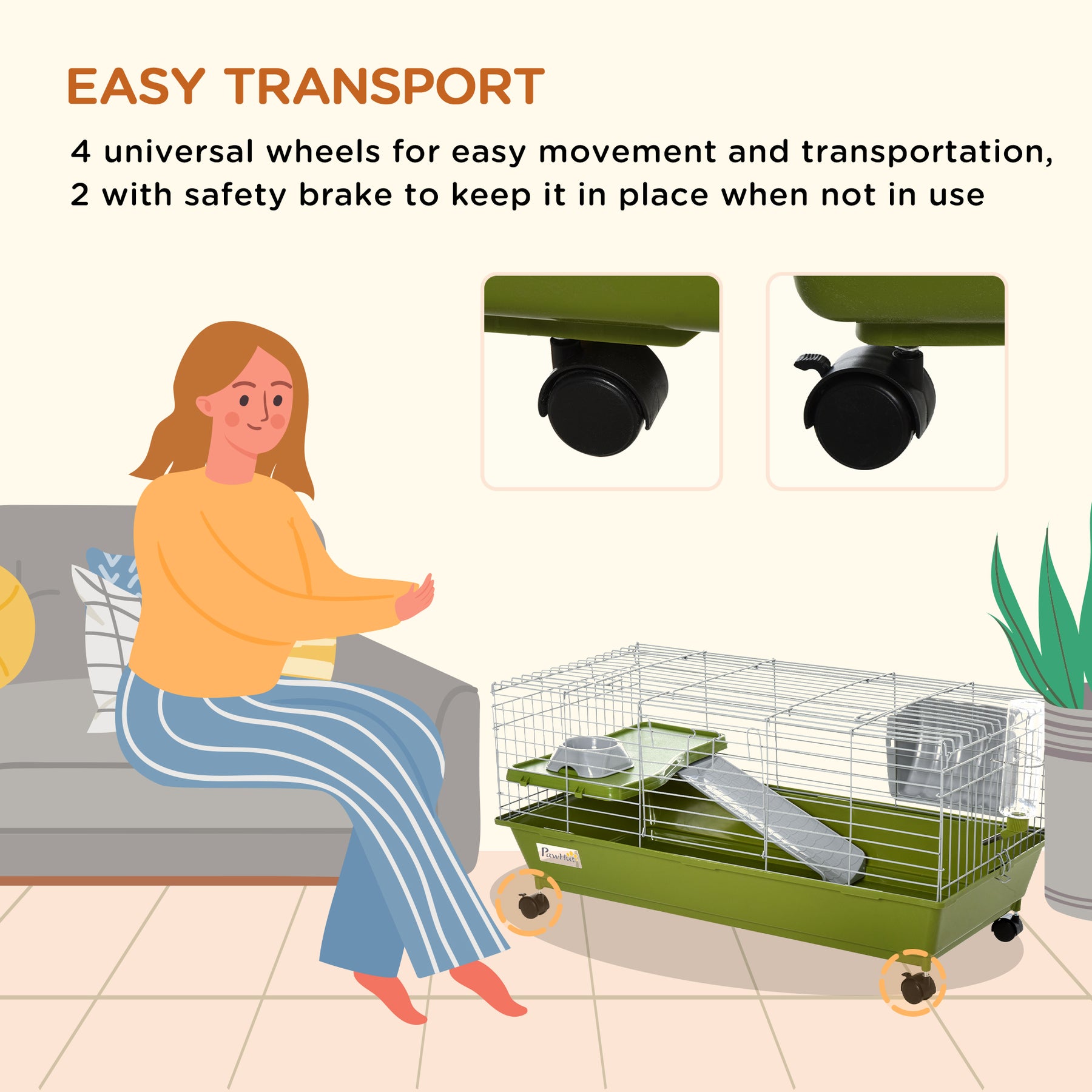 This PawHut small animal cage is the great home for small animals like rabbits and guinea pigs! The reliable design of this guinea pig cage features a large door for easy access to your pet at a moment's notices. Plus, this hamster cage has a deep base for your pet to live and play, giving plenty of living space for them. Also, the chinchilla cage features a ramp and platform to complete this cage. Keep them secure, but also keep them active and occupied for a long life worth living.