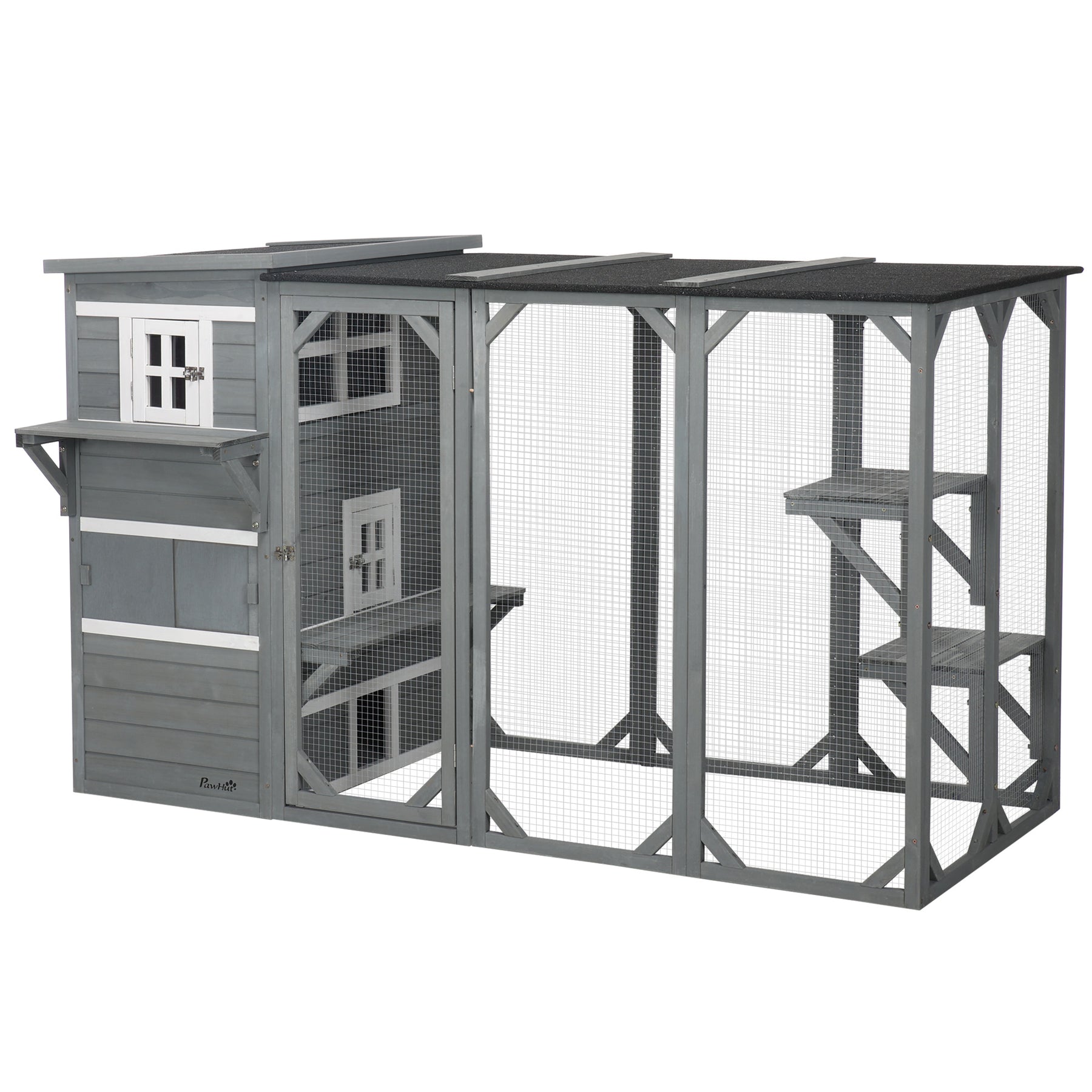 For your cat to enjoy the sunshine and take in the landscape, choose this PawHut outside cat enclosure. It acts as a safe haven that is also cozy for your pet family members. Your cats can climb up onto platforms and relax in the condo, and the tilt roof is covered with asphalt to keep the elements out. This outdoor cat shelter is cozy for wild cats to rest quietly and be protected from the weather, and it can construct or complete an outdoor arrangement.