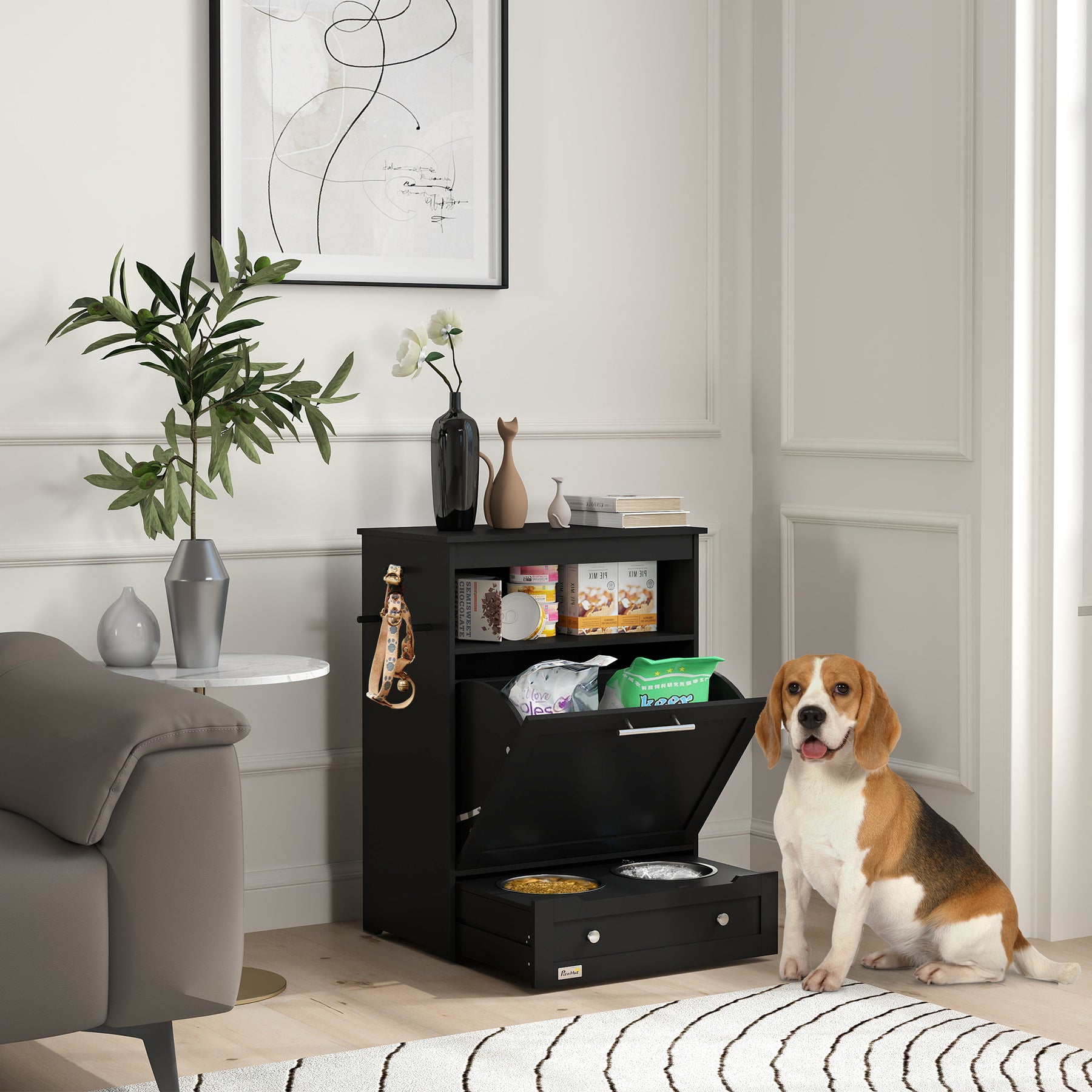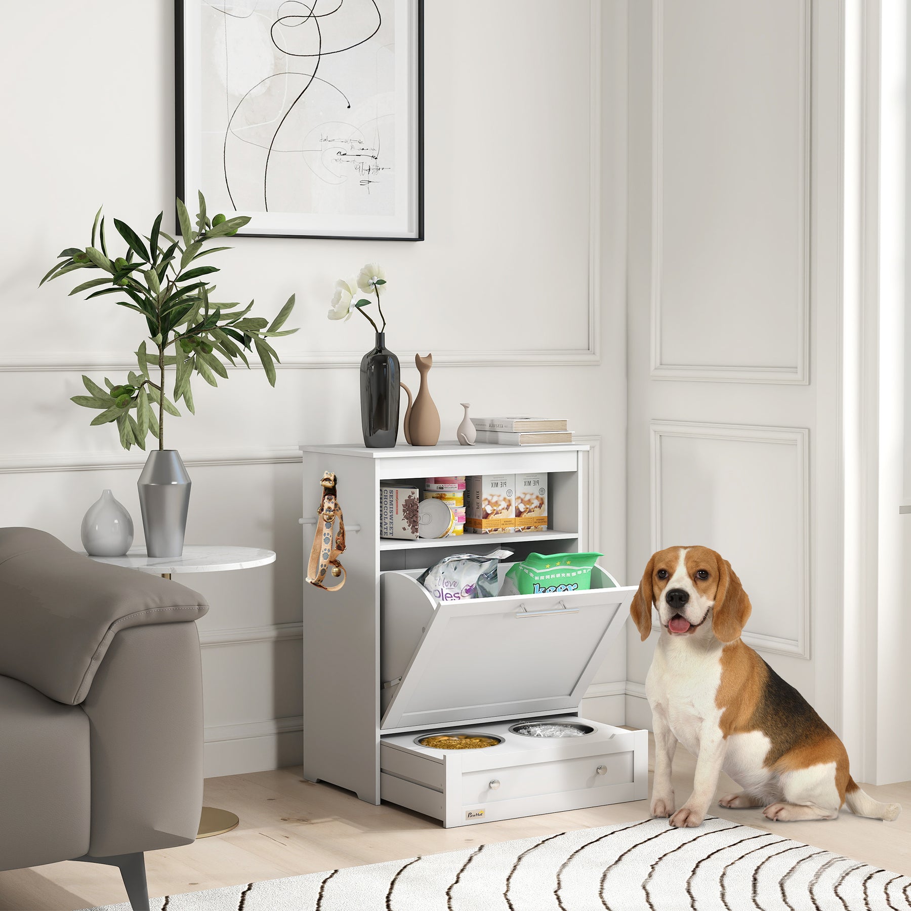 Do you have your pet's food, toys, leash, and other supplies in different places and want a single spot you can keep them all in? The PawHut pet feeder station has all the storage you need. Our pet feeder station have a shelf, a food bag compartment, and the bottom drawer has two feeder bowls. You can push them back in and out of sight when not in use. Create a single-stop spot for all your pet's supplies with this food storage cabinet from PawHut.