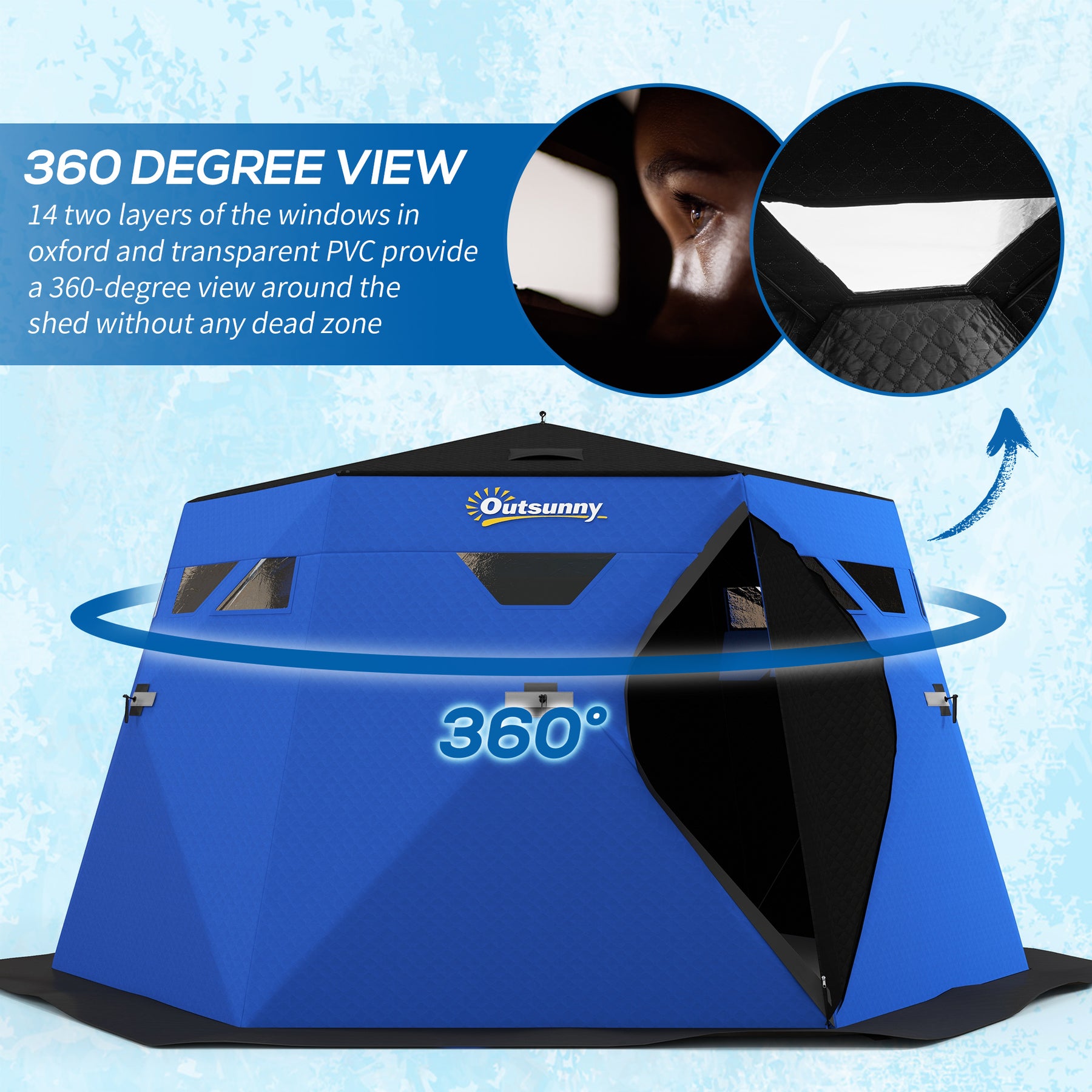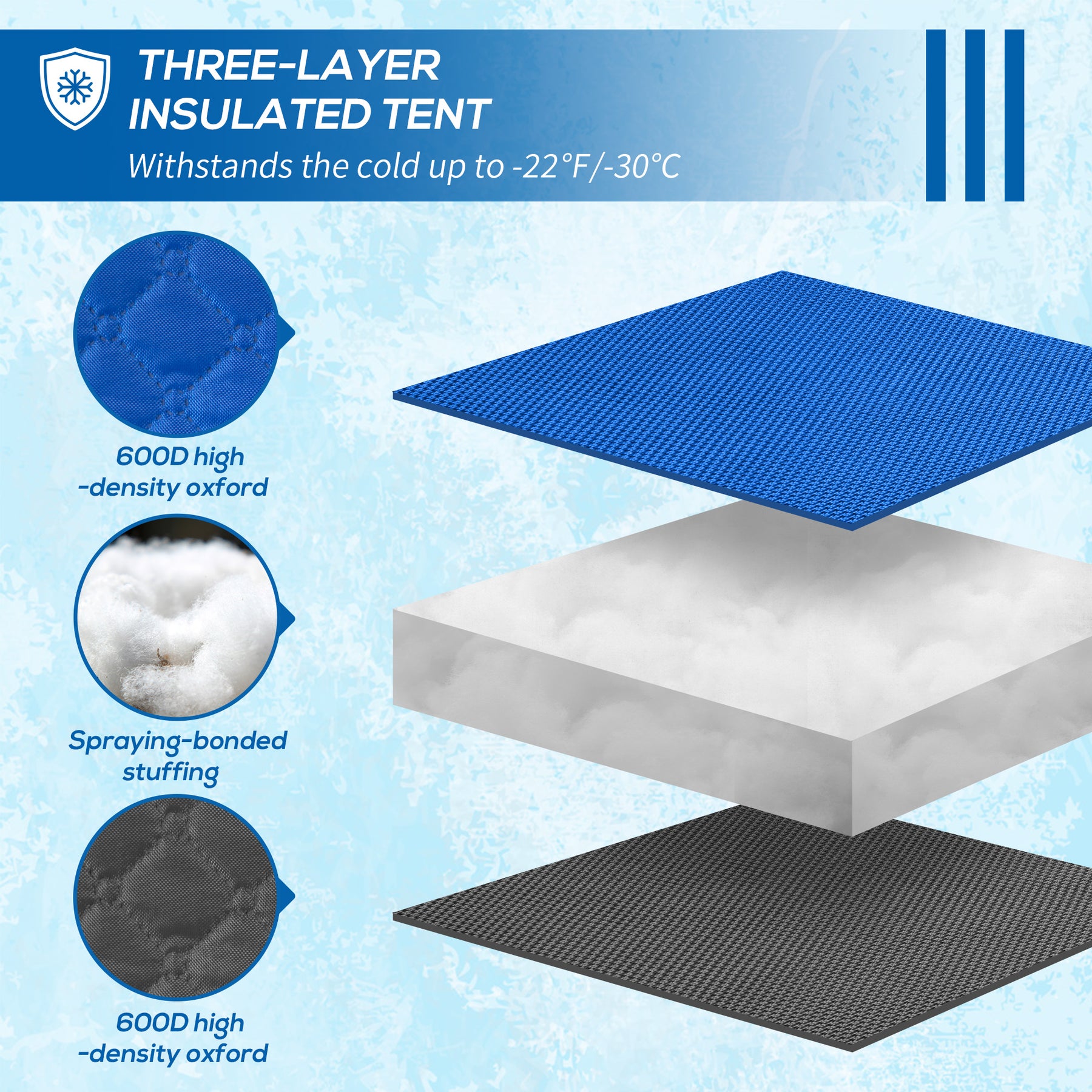 Try ice shelters by Outsunny. They are made of 600D premium oxford fabric with spraying-bonded wadding. The mesh windows on top of the fishing shanty allow for excellent ventilation to ensure you remain comfortable and avoid overheating if you use a heater inside the tent. Two doors have zippered openings that allow for easy access to the tent. Enjoy the fun of ice fishing in this protective ice fishing shelter.