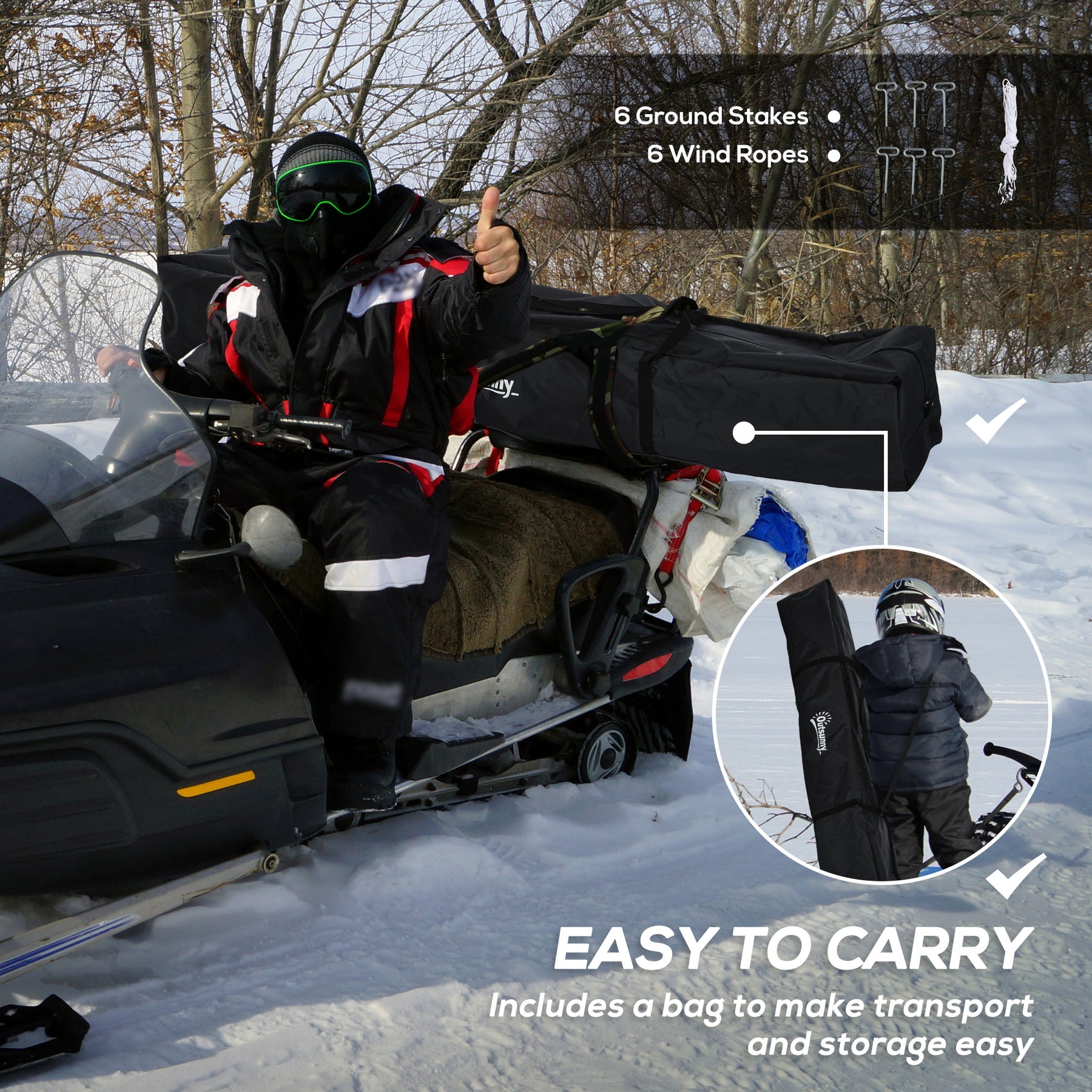 This Outsunny pop up ice shanty will provide you and your buddies with the ability to fish in the cold winter with comfort and warmth! Constructed with sturdy hubs, fiberglass poles, an extra heavy-duty zipper, a reinforced bottom, ground stakes, guy ropes, and removable windows, this ice fishing shack is designed to keep the cold breeze out. Ideal for 5-8 people, it is an optimal choice both for occasional ice fishermen and fishing enthusiasts!