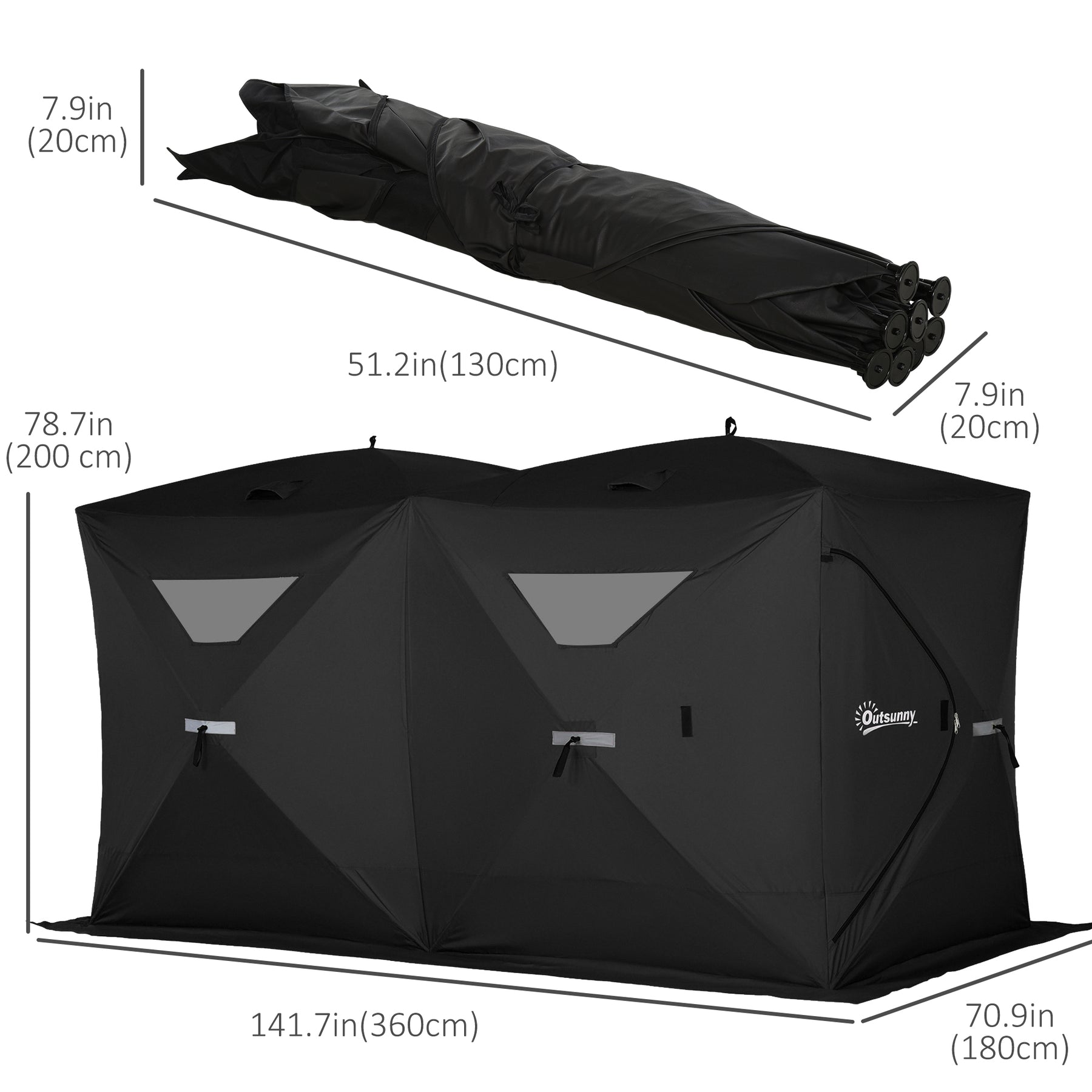 - • Available for 5-8 people, measured 141.7" L x 70.9" W x 78.7" H, 70sq. ft. of fishable space