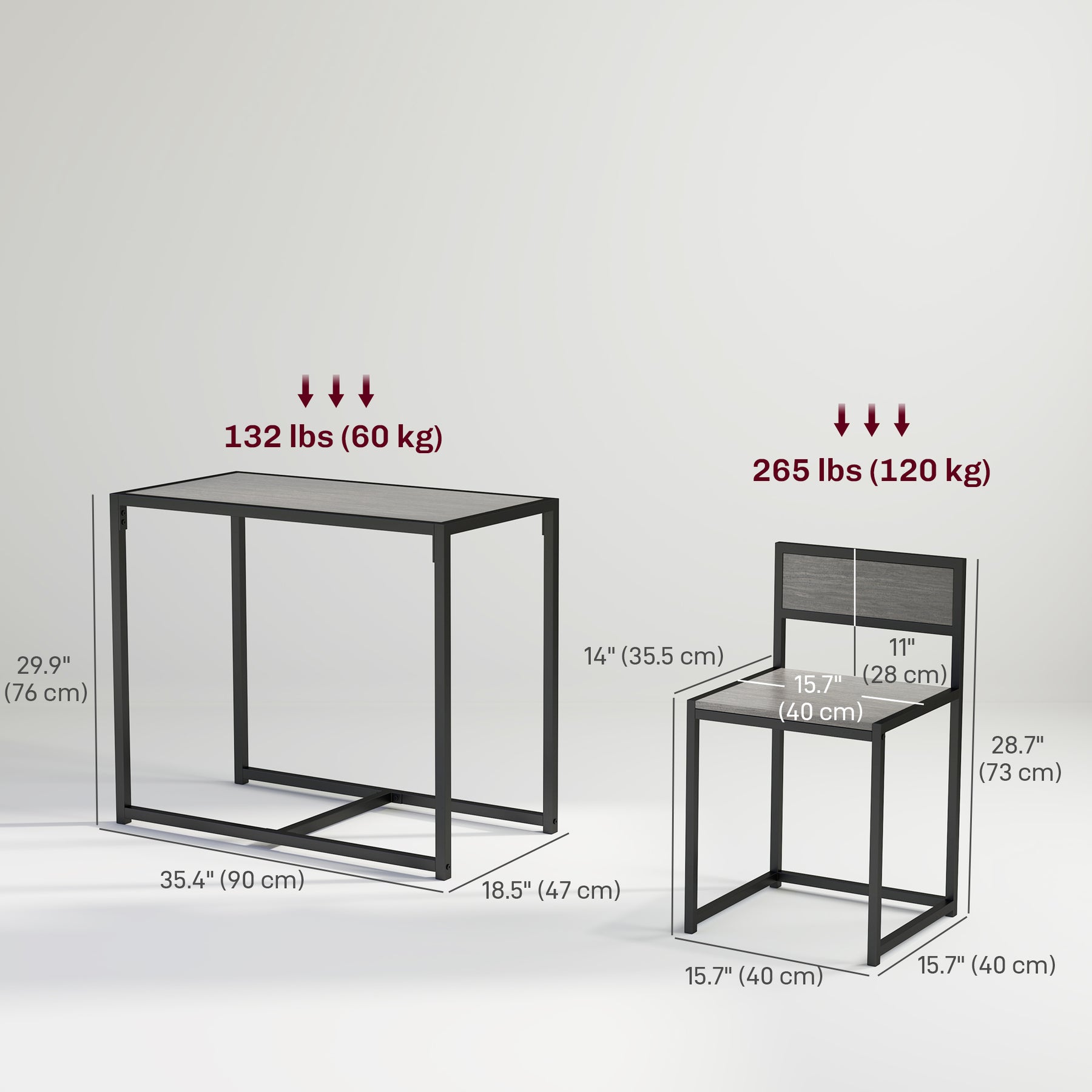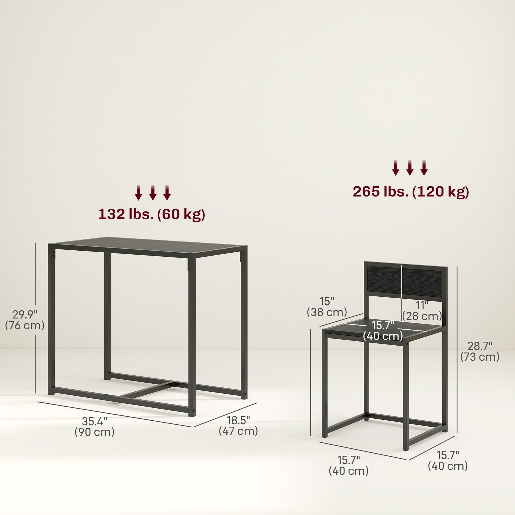 - • Weight Capacity: 264 lbs./120 kg (Stool), 132 lbs./60 kg (Table)