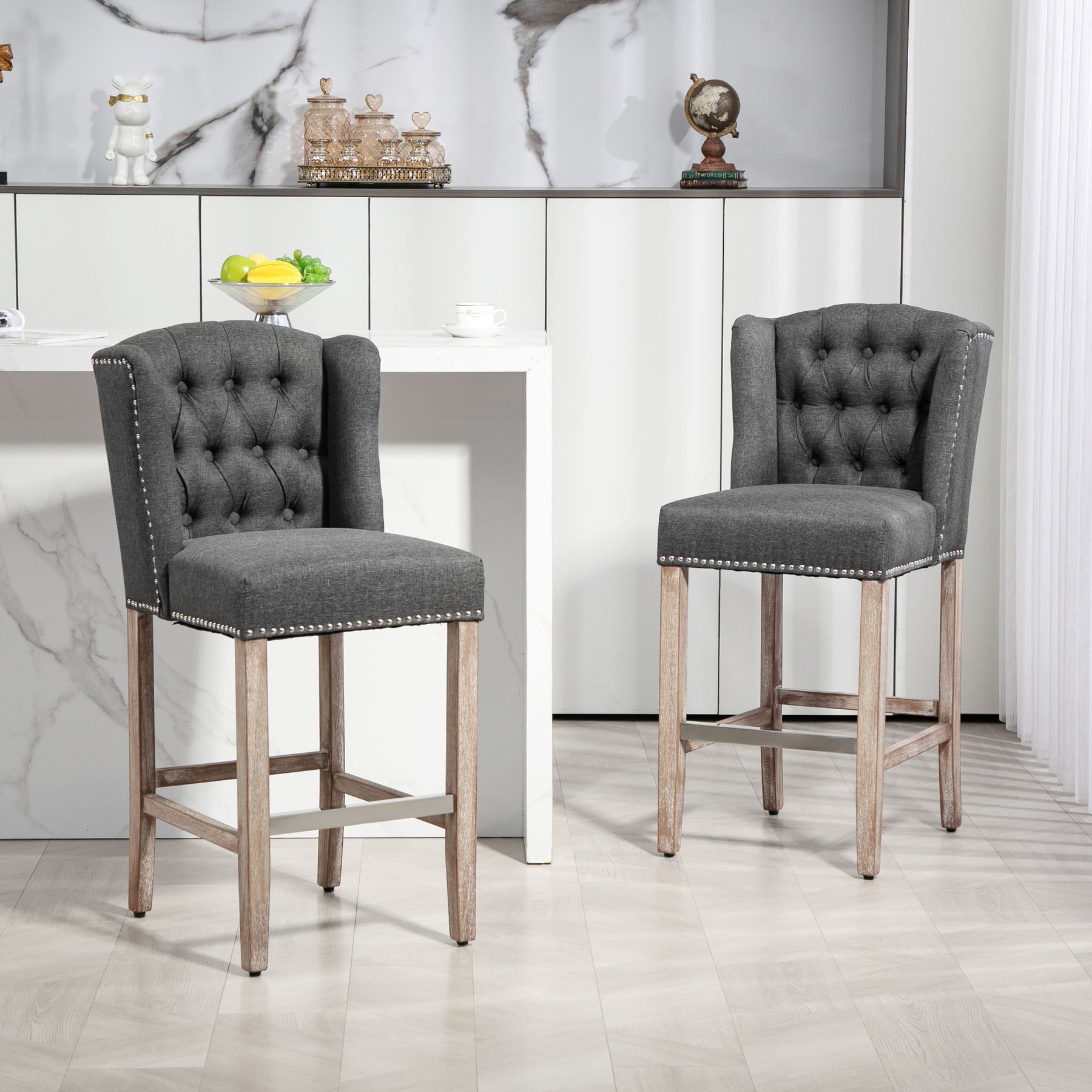 This stools for kitchen island from HOMCOM is the great combination of sophistication and modernity that you need to add to your home or bar to style it up. Solid wood is robust, with anti-slip base features better stability and safety to avoid tipping over. In an effort to build a bar seat, foot bars have been added to the island stools as both a reinforcement and a convenient footrest to help rest your legs. Suitable for kitchen islands, breakfast bars, home bars, or dining counters.