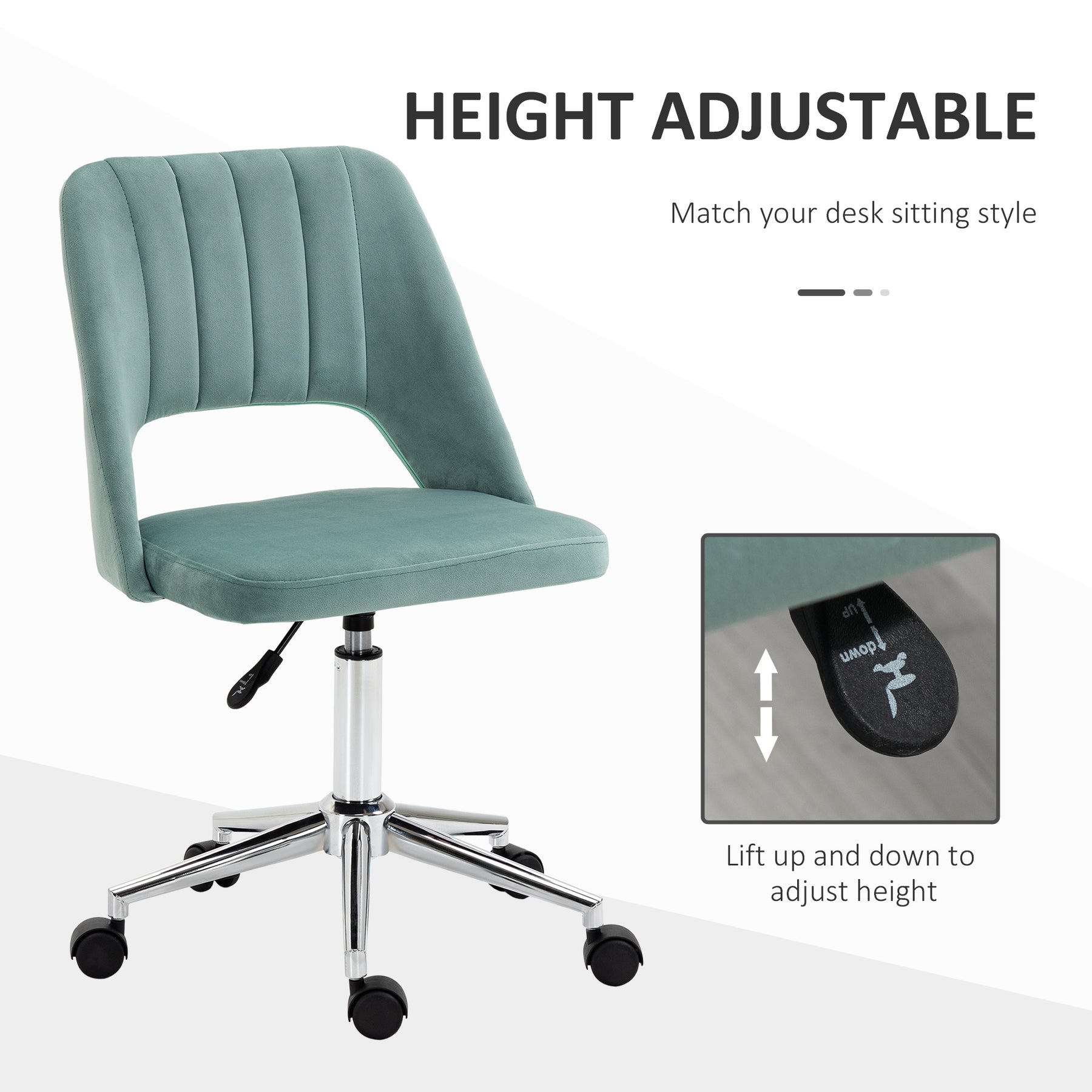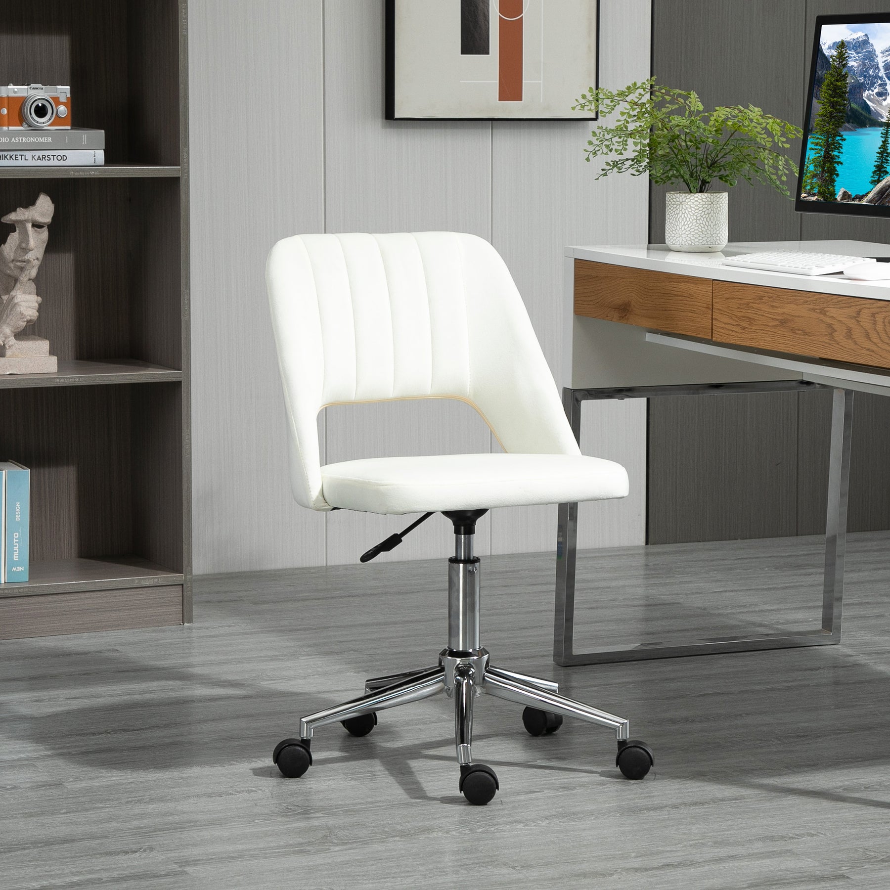 Choose the Vinsetto comfy swivel chair for your bedroom or home office, designed for both leisure and work. Featuring a curved line design, breathable hollow-back, thick padding, and soft fabric, it ensures long-lasting comfort. The adjustable seat height, combined with a high-end gas lift and swivel wheels, allows easy movement and a personalized sitting experience. This work chair adds both style and comfort, making it a great addition to any living space.
