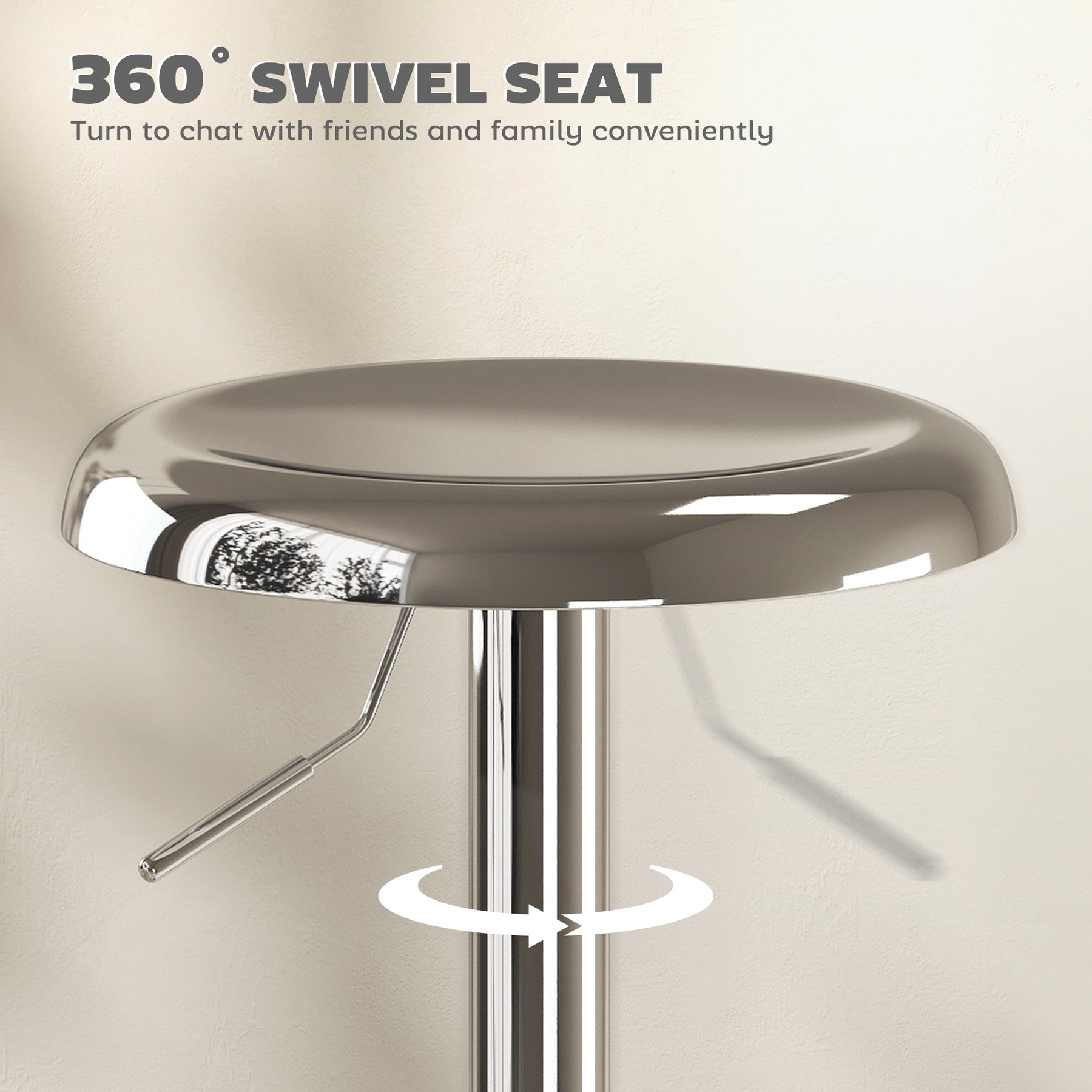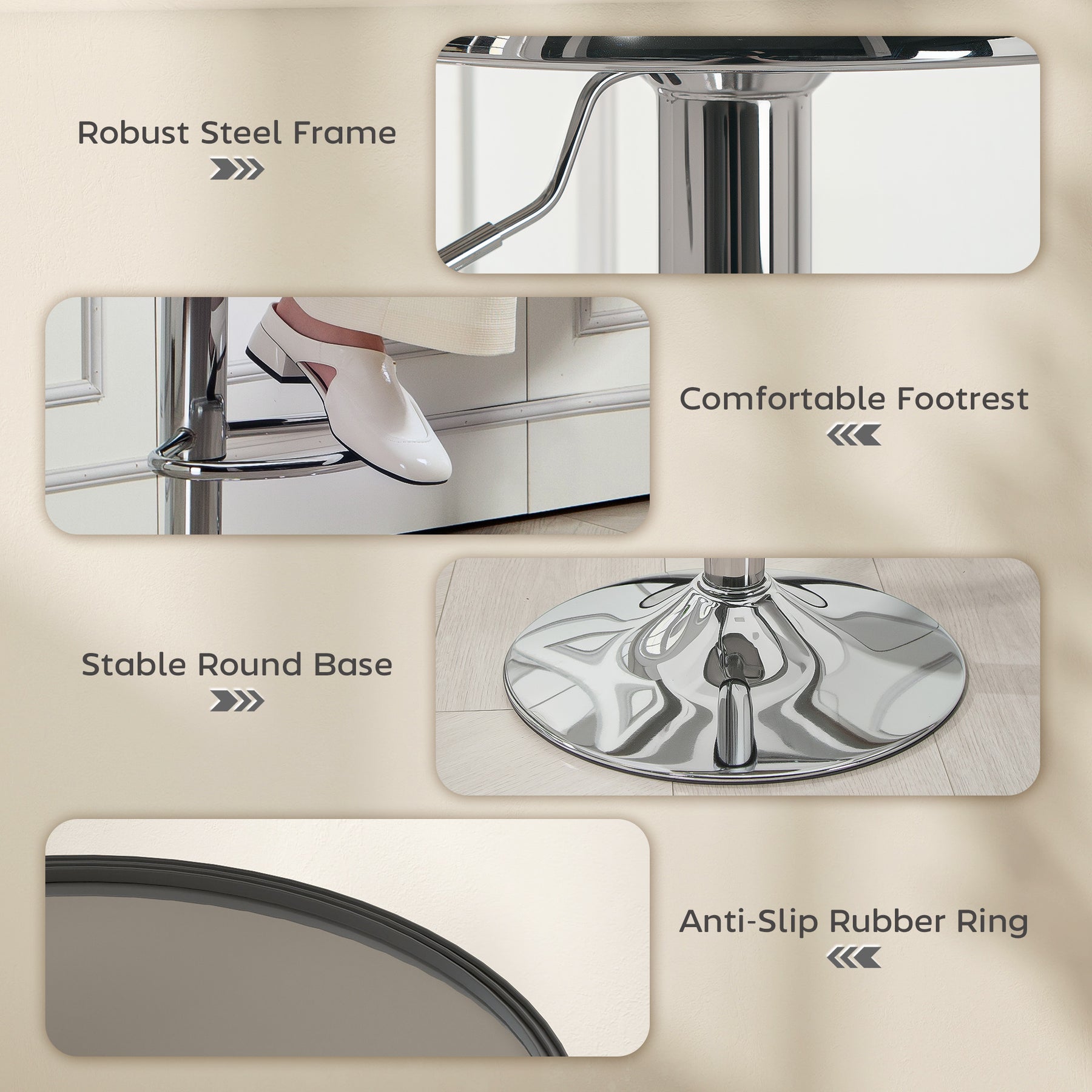 Transform your home gatherings with the HOMCOM set of two bar stools, designed for effortless pairing and instant coordination in your home bar area or kitchen. Elegant silver accents add modern industrial charm, enhancing your living space. The adjustable height ranges from 23.6" to 31.5" (60 to 80 cm), letting you find the most comfortable seat for any occasion. Elevate your home's ambiance with these stylish and functional bar stools.