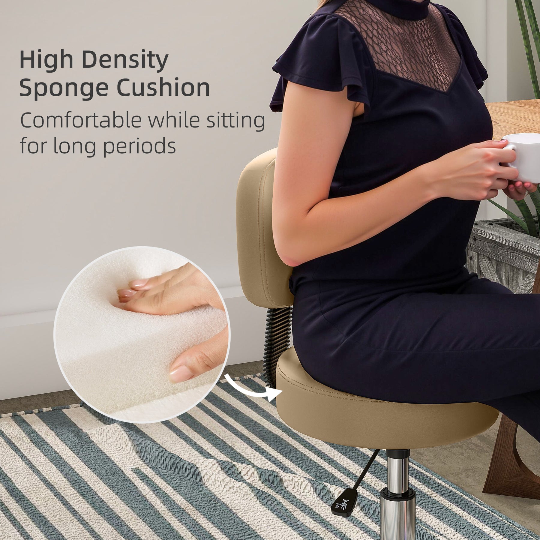 - • Soft PU leather and padded round seat for high comfort and easy maintenance