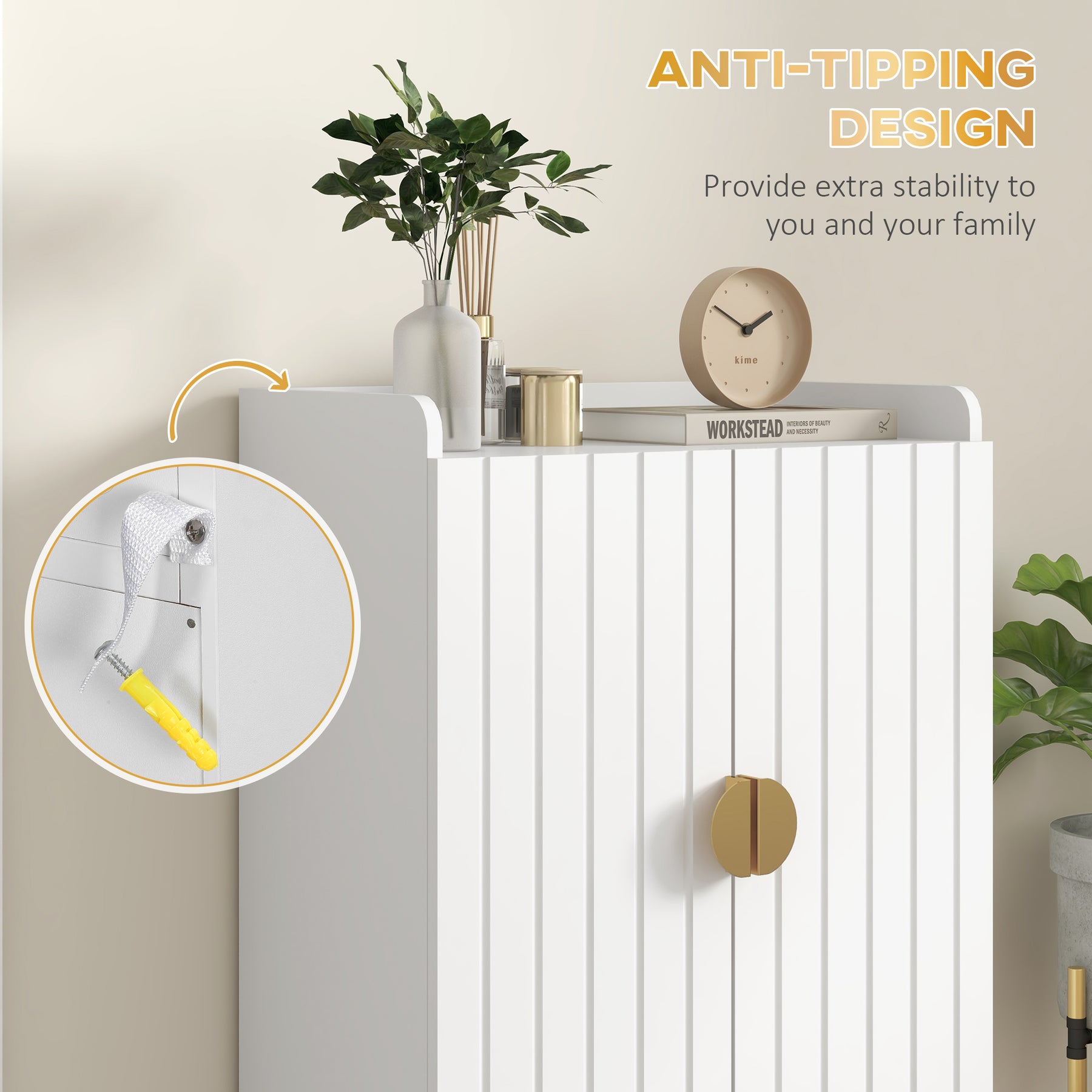 Start organizing and storing your shoes easily - opt for the HOMCOM slim shoe cabinet. It is crafted in a 4-tier closed cabinet design with three adjustable interior shelves and an open storage shelf, offering space for up to 15 pairs of shoes. It features anti-tip hardware, which means this narrow cabinet is suitable for homes. Buy it, and you won't regret it.