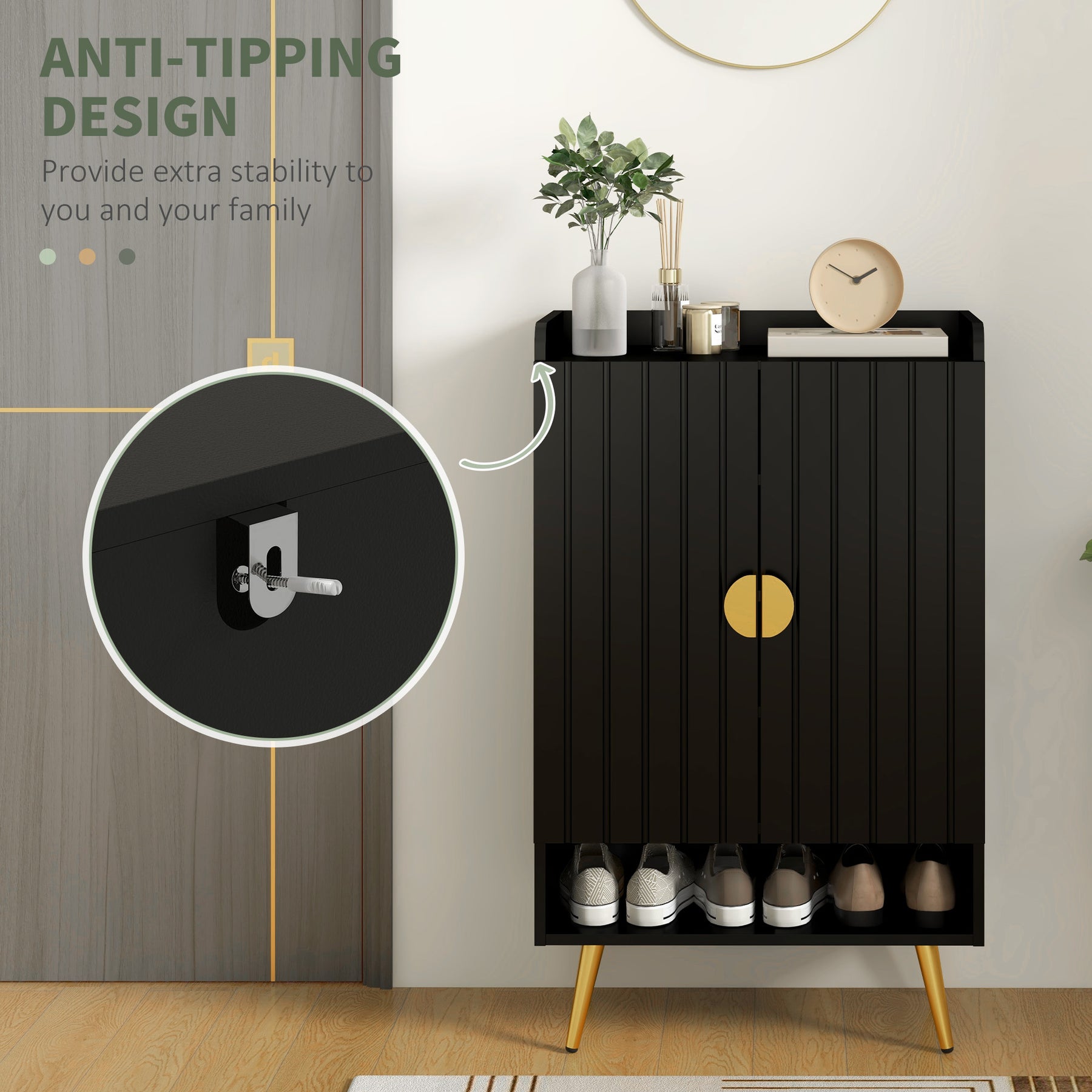 - • Neatly organize your shoes at the entrance, hallways, or any narrow places