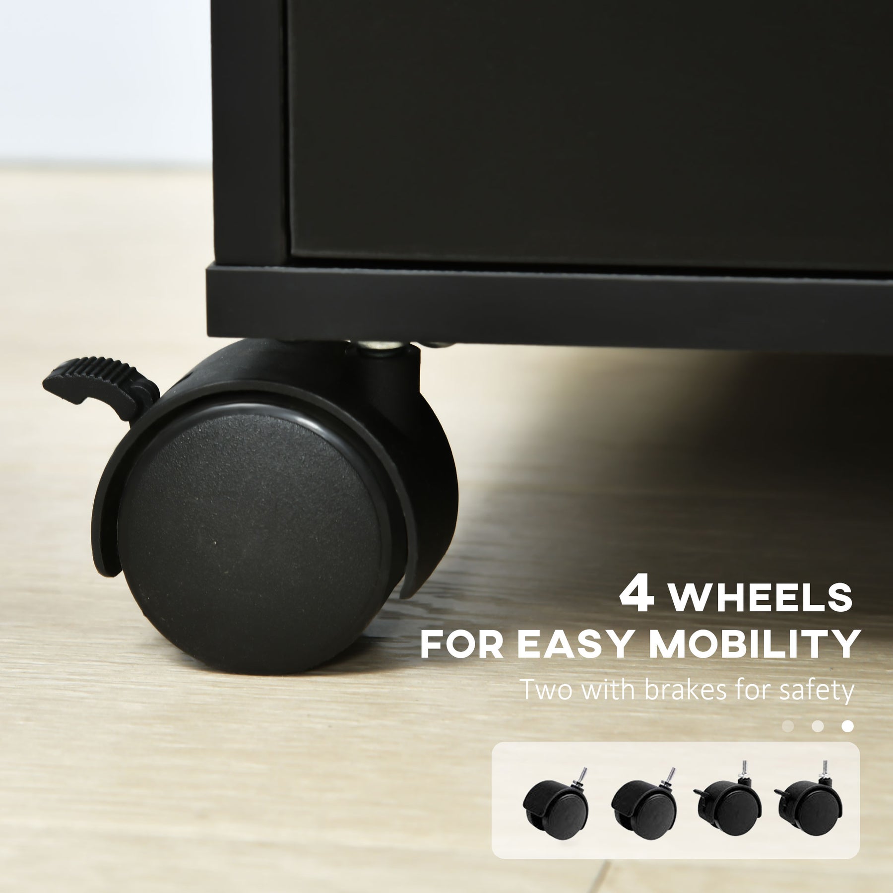 Our HOMCOM filing cabinet makes storage of your files a breeze! With good storage capacity, this printer stand is ideal for storing paper or writing utensils. The smooth-rolling casters on the bottom of the 5 drawer storage organizer offer flexible placement in the office or house, so you can rearrange for optimum space efficiency. The storage cabinet with drawers will go well with a modern office decor. Handcrafted from natural grade MDF, this office cabinet is sturdy.