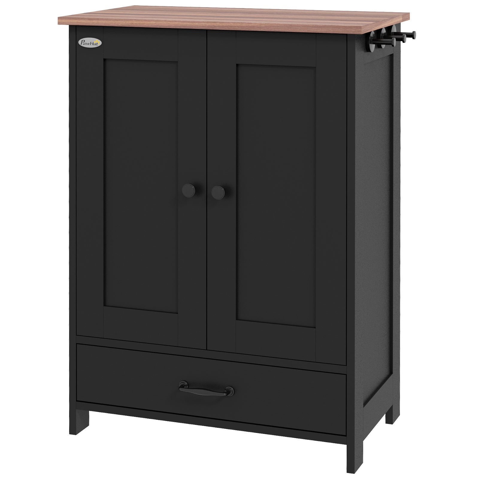 Upgrade your pet's dining experience with the PawHut Dog Feeder Station. This stylish unit features two concealed bowls and an adjustable food storage cabinet, ensuring a neat eating area. Complete with three hooks and a furniture-like appearance. This pet dish bowl set with storage seamlessly integrates into your home while catering to the needs of medium-sized dogs.