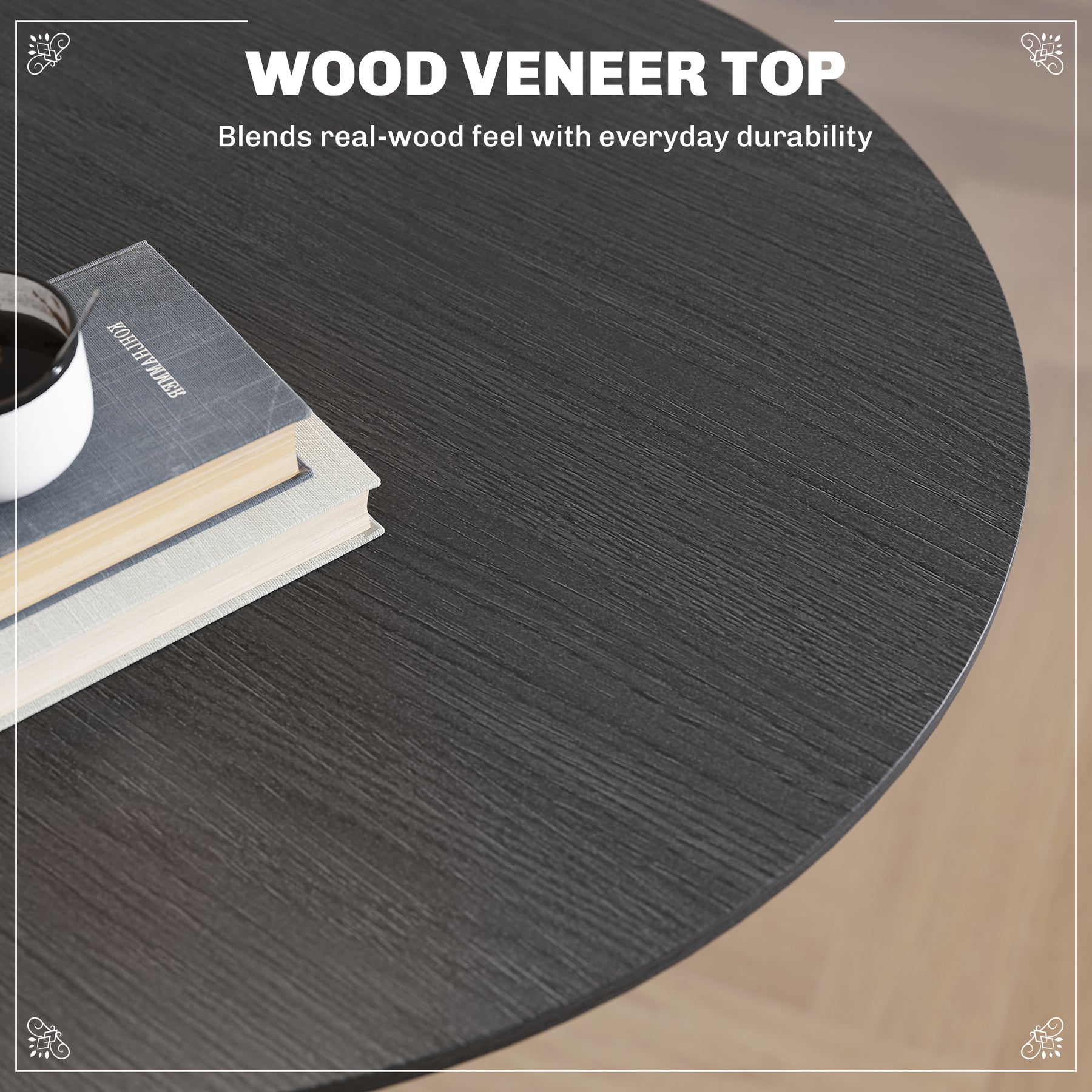 Transform your dining experience with the HOMCOM bar table, designed for cozy meals for two. Admire the beauty of its solid wood veneer surface that brings a touch of nature to your kitchen. This small kitchen table features smooth, painted edges and a robust steel base, complete with an anti-slip rubber ring for stability in your bistro or kitchen setting.