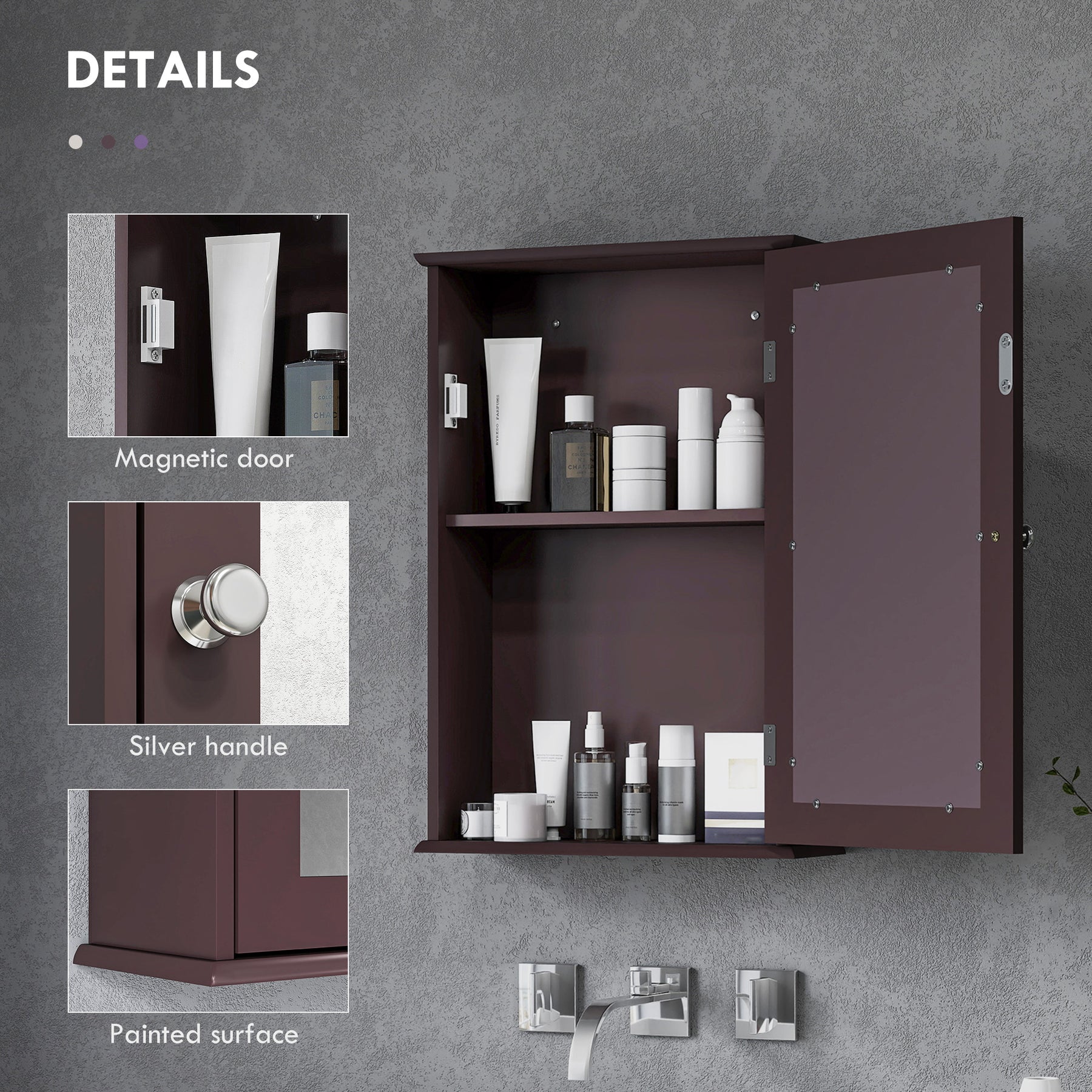 Acquiring a stylish and tidy space need lots of efforts! The medicine cabinets for bathroom from kleankin can help you get stylish and tidy sense at the same time. The design of mirror and storage cabinets allows you to save space easily while using the mirror. 2-tier shelf gives you flexibility to allocate space. The painted surface, magnetic door stopper, take full account of stability and convenience. Get the stylish and tidy through this bathroom mirror with shelf from kleankin!
