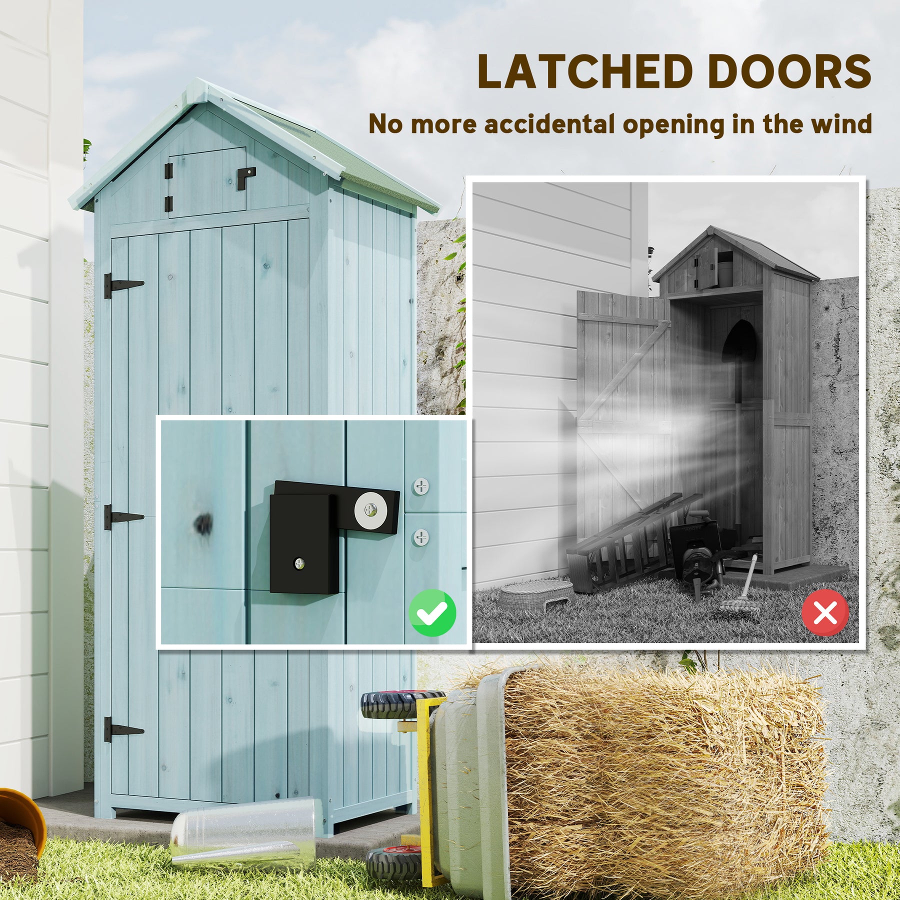 The Outsunny outdoor storage cabinet is an ideal solution for organizing your garden tools and equipment. You can place small items on 3 shelves and store bigger tools in the larger area. This vertical storage shed is made of durable fir and cedar wood for a sturdy and strong construction. The wooden surface is covered with waterproof paint and the roof with asphalt to help provide added protection outdoors. The shed kit is designed to be an elegant and practical addition to your yard.