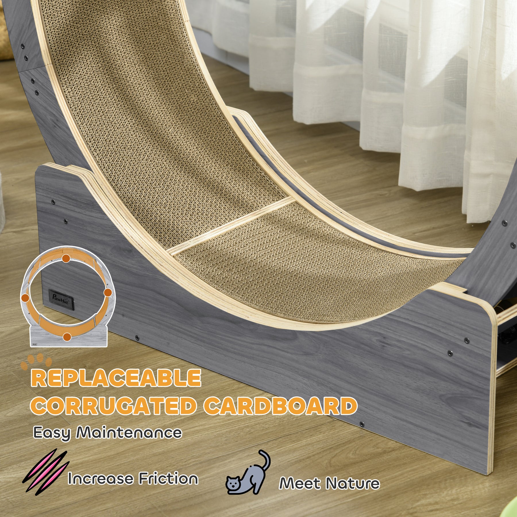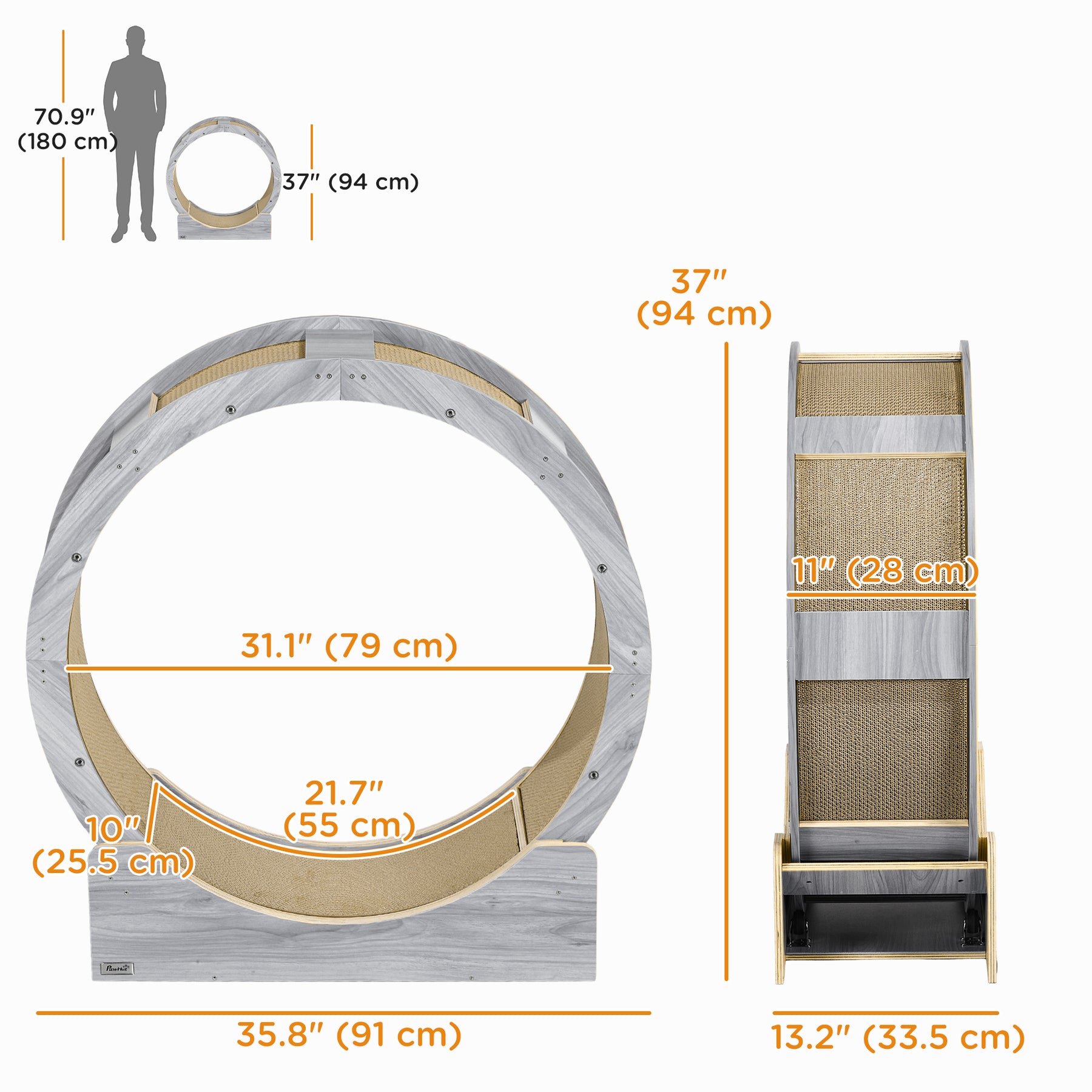Unleash your feline's inner athlete with the PawHut cat wheel. Designed for flexible rotation and equipped with a locking brake, this cat exercise wheel makes fitness fun. This cat treadmill wheel has a built-in scratching pad to satisfy their clawing needs while ensuring a steady grip. Transform playtime into workout time with our cat runner wheel, the go-to choice for happy, healthy cats.
