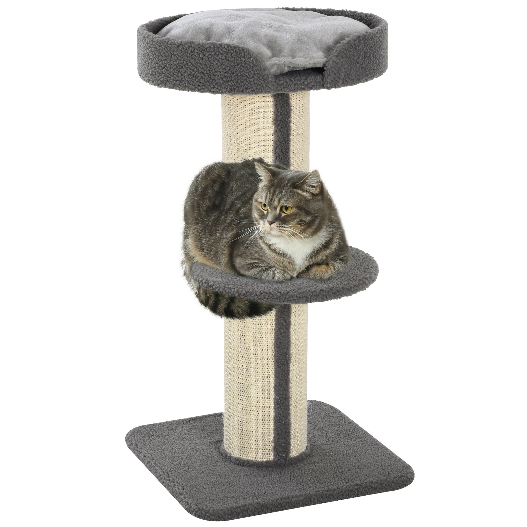 Cats enjoy jumping, running, hiding, scratching and hanging out, which keeps them healthy and happy. A suitable cat playground is just such a place for cats to do these activities. With this cat tree from PawHut, rest and play in a spot. Features scratching post, perch, and cat bed. The sisal mat wrapped post keeps claws sharp and away from furniture. Using particle board for a robust structure, it's covered in soft plush so it's soft and cozy for your pet.