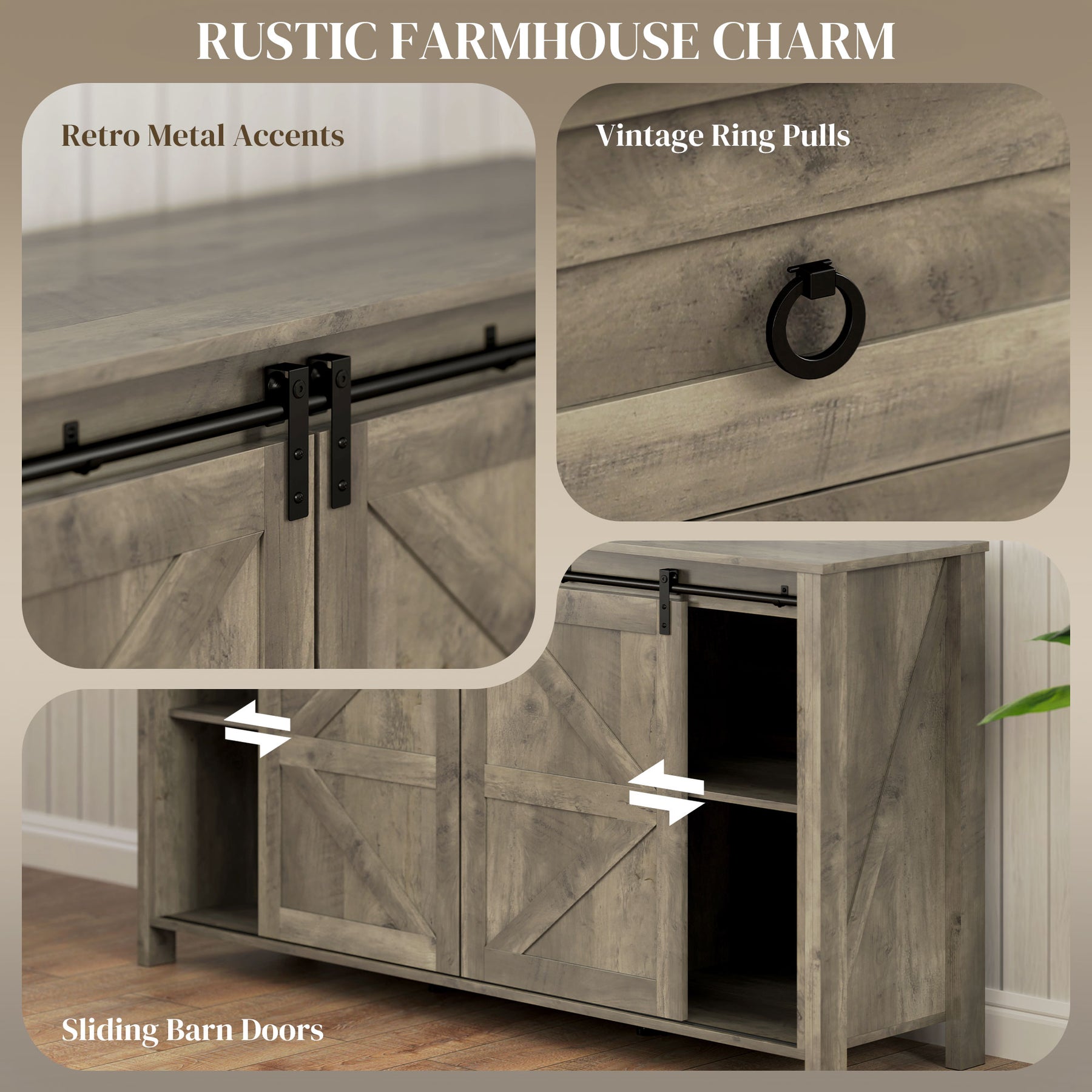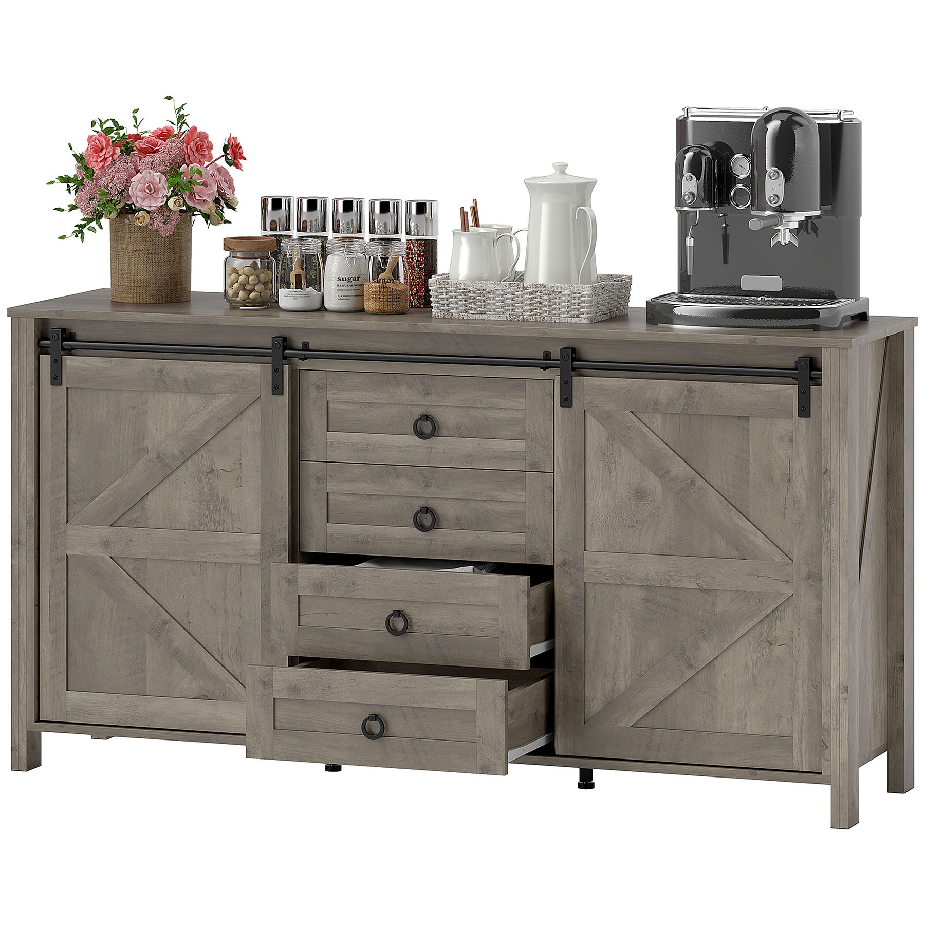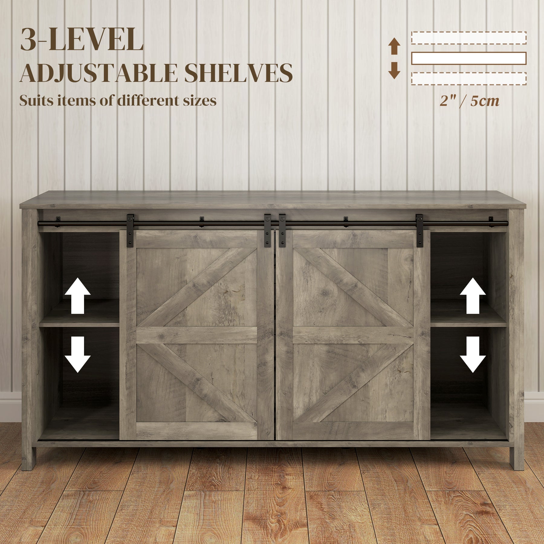 Say goodbye to clutter and hello to organized elegance. Our farmhouse buffet cabinet from HOMCOM with classic barn doors and retro metal accents is designed to infuse rustic charm into your home. Whether you're organizing your kitchen, creating a stylish coffee bar, or adding charm to your entryway, our storage cabinet with doors is a great addition to any space. Keep your dining essentials neatly organized today through this HOMCOM sideboard with spacious and functional storage.