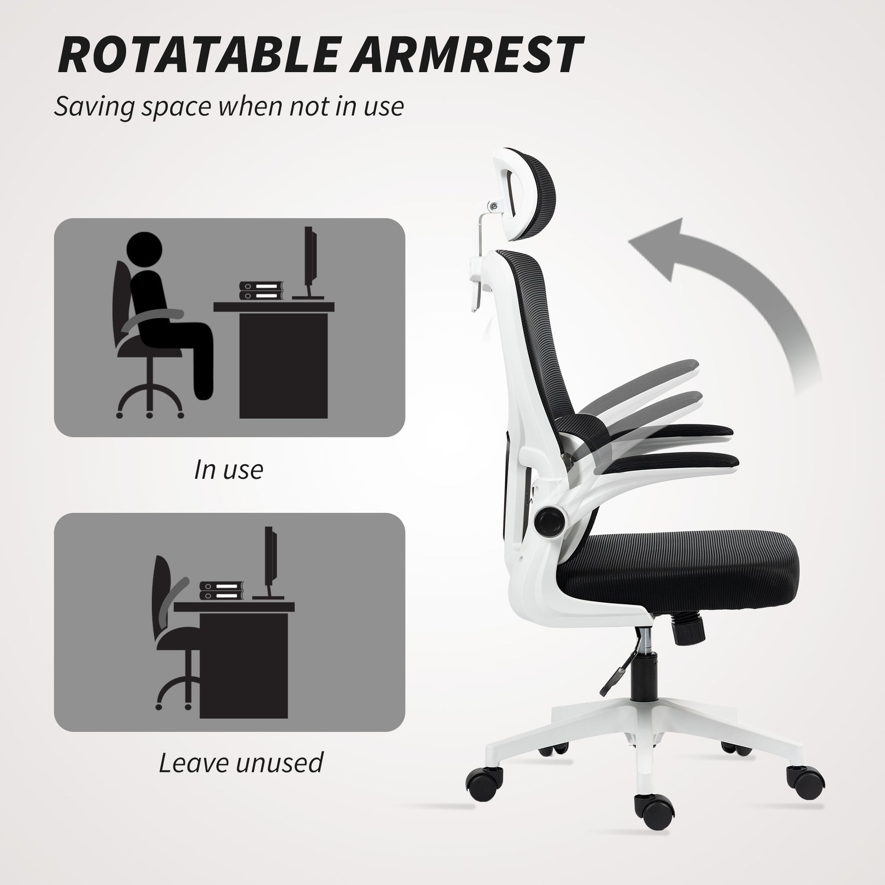 - • The headrest can move up or down, rotate, removable