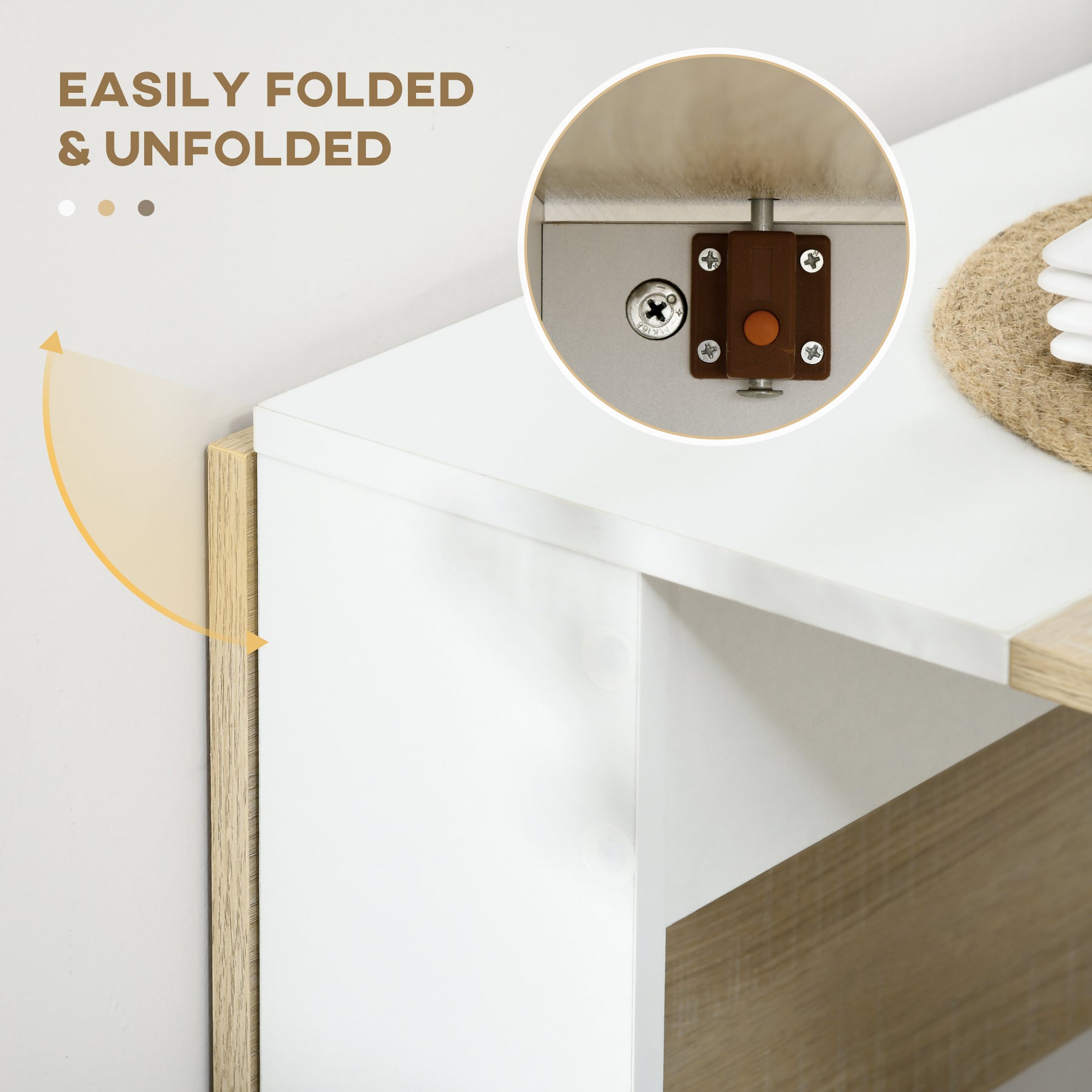 This Drop Leaf Table from HOMCOM is functional and space saving, which is suitable for kitchen or other small area. Simple elegance and versatility define this drop leaf table, you can use it as a small side table in the kitchen with the drop leaf down. Lift the drop leaf to double the table size for dining needs. It is also great for the family room to spread out games, puzzles or use as an additional workplace. Easy and quick assembly is required with necessary hardware included.