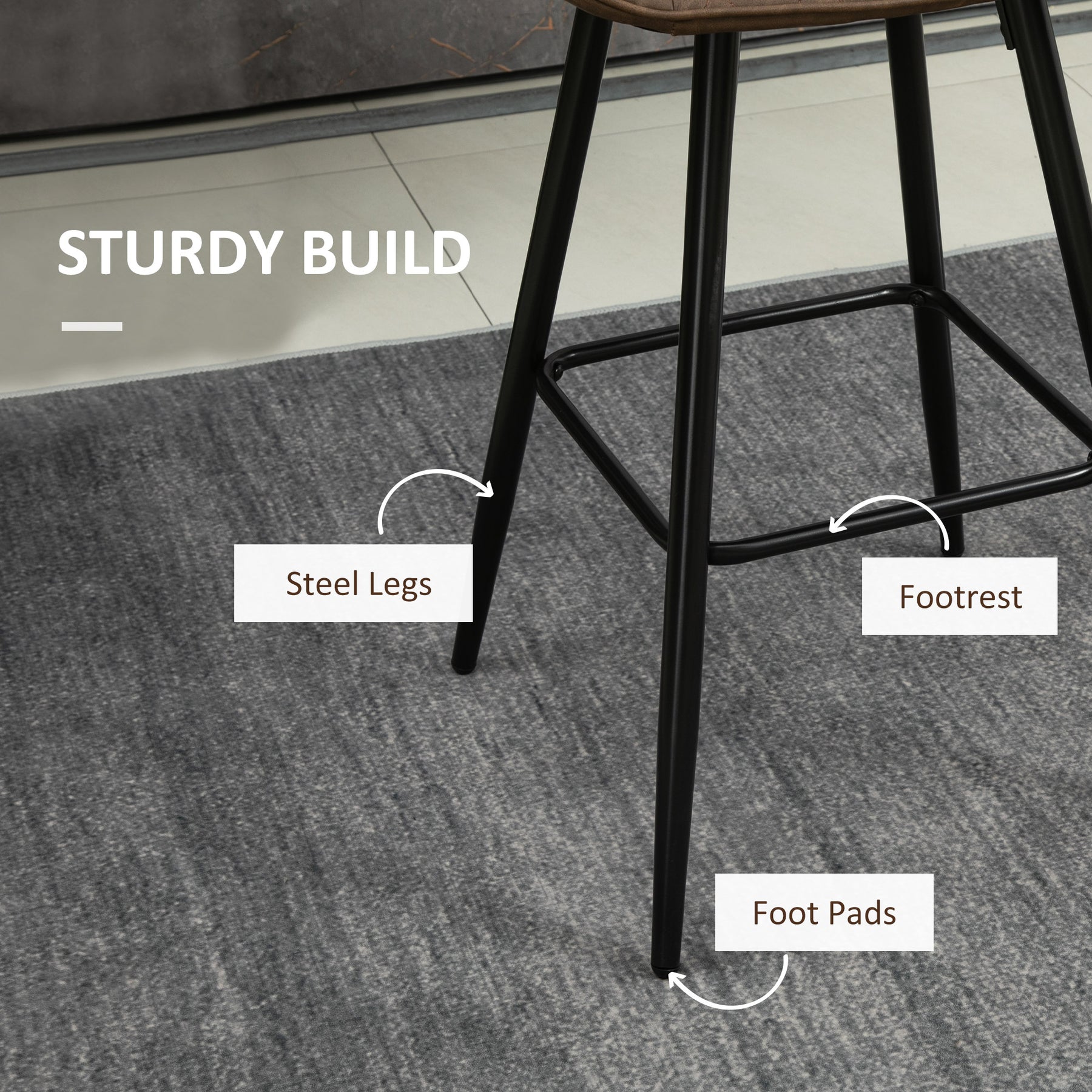 Maximize your kitchen or dining room counter space with this modern bar stool from HOMCOM. Whether you want to start your morning with a relaxed breakfast or end your evening with drinks, this elegant bar stool set will suit your needs. It is upholstered with PU leather to provide a stylish look. Solid steel legs support up to 264 lbs. (120 kg). The bottom footrest prevents your legs from dangling, giving you a comfortable sitting experience.