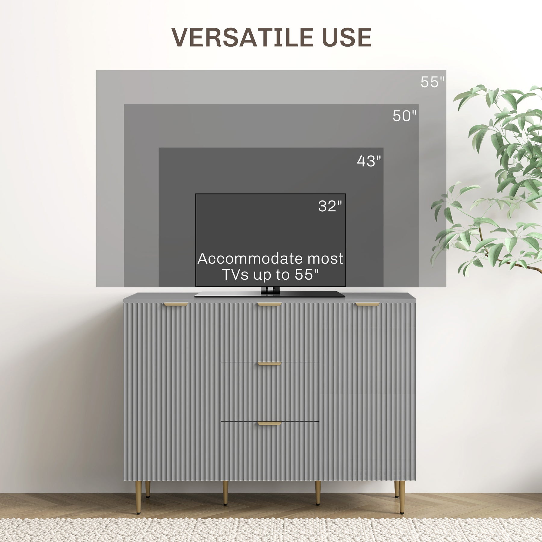 - • All-purpose storage cabinet also serves as an TV stand, holding TV up to 55"