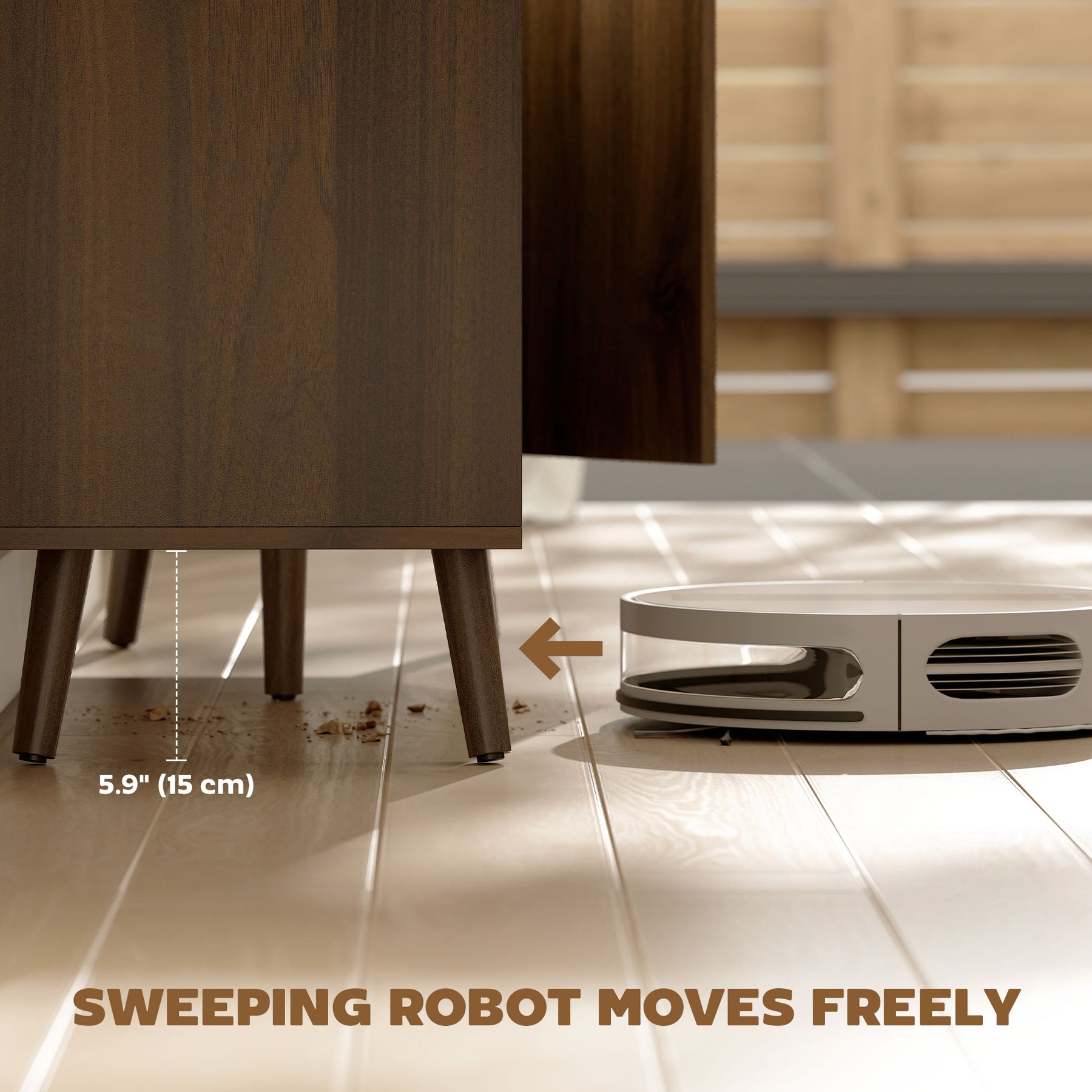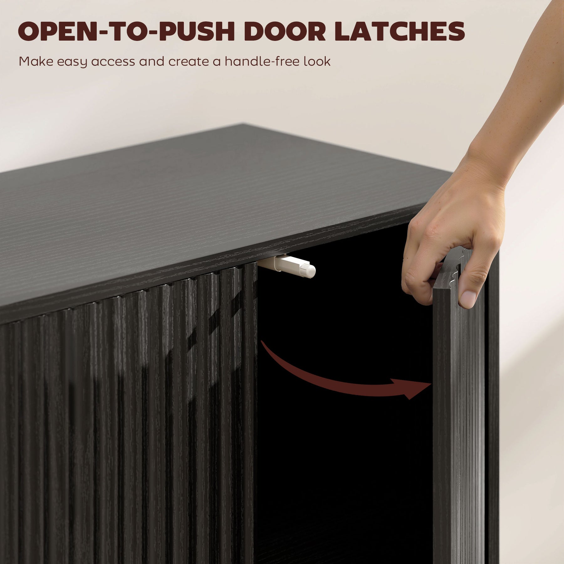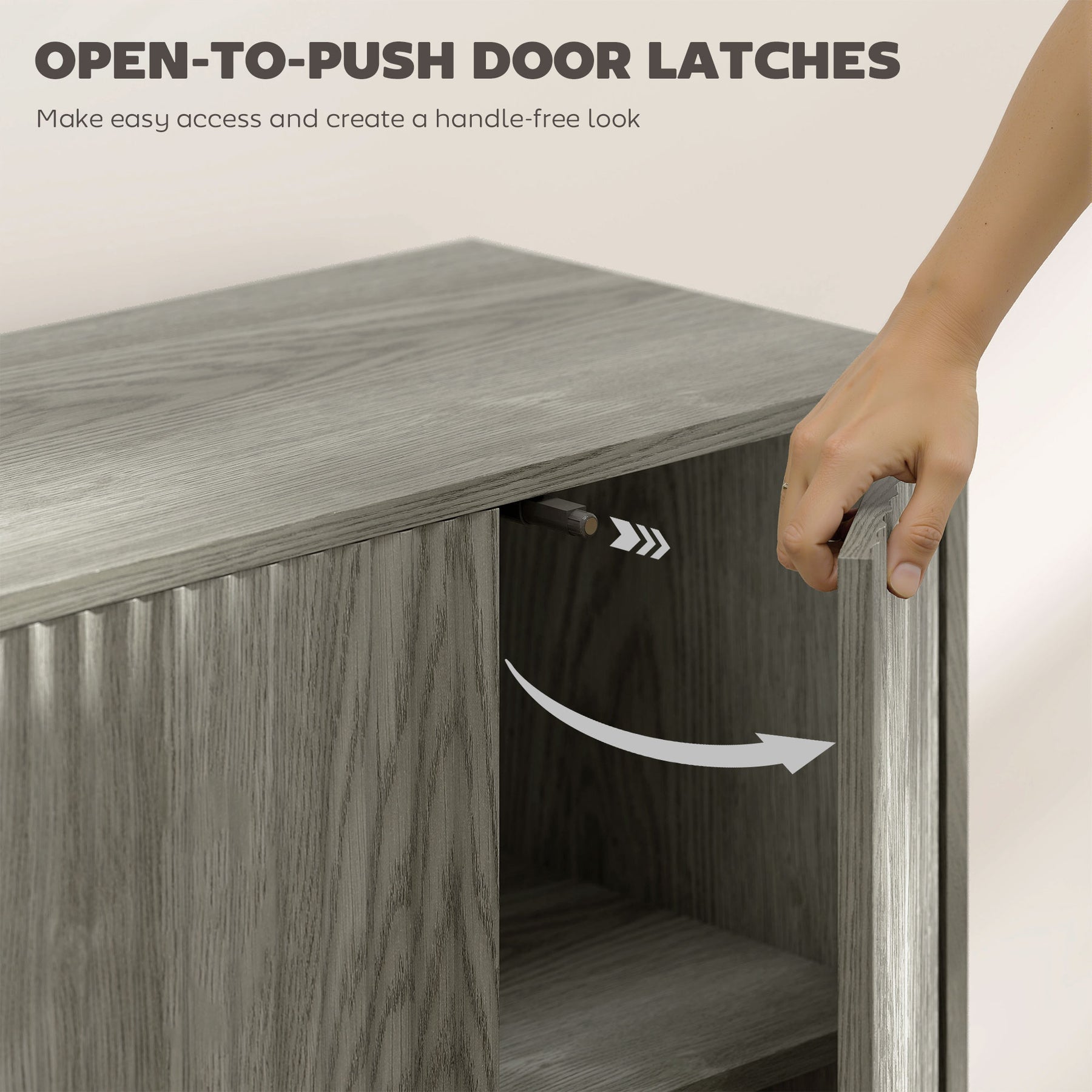 Unlock the charm and versatility of the HOMCOM sideboard and enjoy every moment in your organized dining room. Elegant fluted door panels and wood grain finish on this kitchen cabinet bring modern elegance to complement any decor. Featuring four spacious compartments inside two double-door cabinet with two adjustable shelves, it's great for creating a coffee bar, organizing kitchen essentials, or adding a stylish touch to your hallway. Embrace the little joys in life with HOMCOM buffet.
