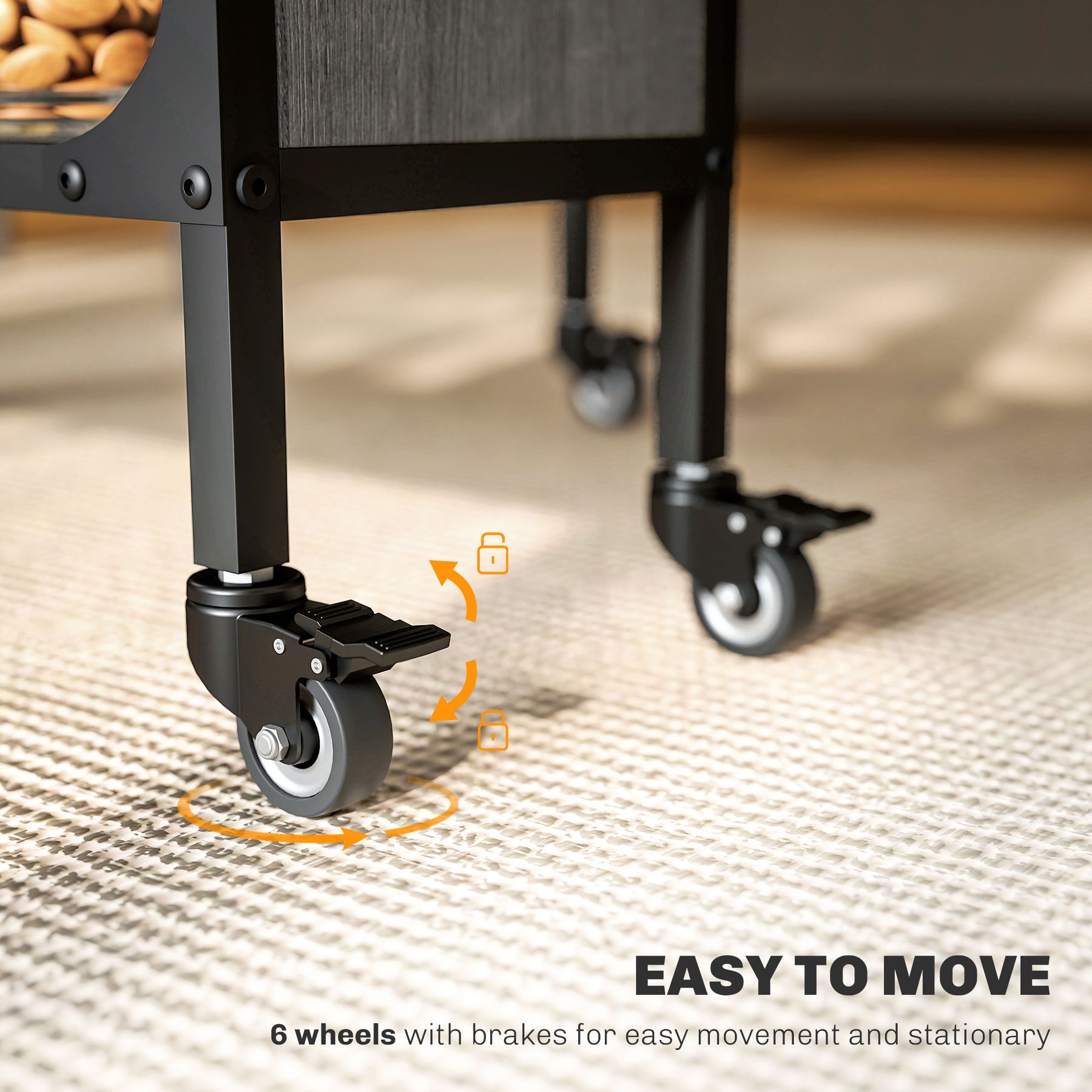 Say goodbye to bulky, unused tables. This HOMCOM drop-leaf dining table expands when needed and folds into a compact unit when not in use. A discreet storage cabinet keeps items handy, while 6 casters—6 with brakes—ensure smooth movement and secure placement.