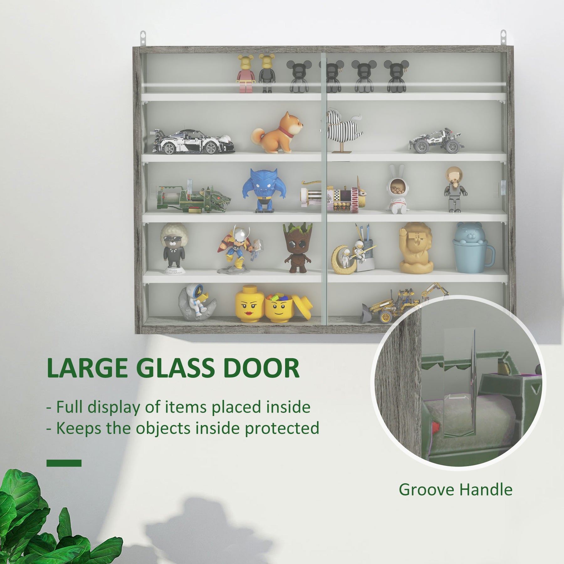 Do you have numerous small items you need help organizing? Do you have valuable souvenirs or collectibles you want to keep safe and on display? Our HOMCOM display case for collectibles is a great solution. Mounted on the wall like a closet, it features four adjustable shelves, allowing you to arrange your items in 5 neat layers. The large glass front door ensures everything is visible and easy to admire.