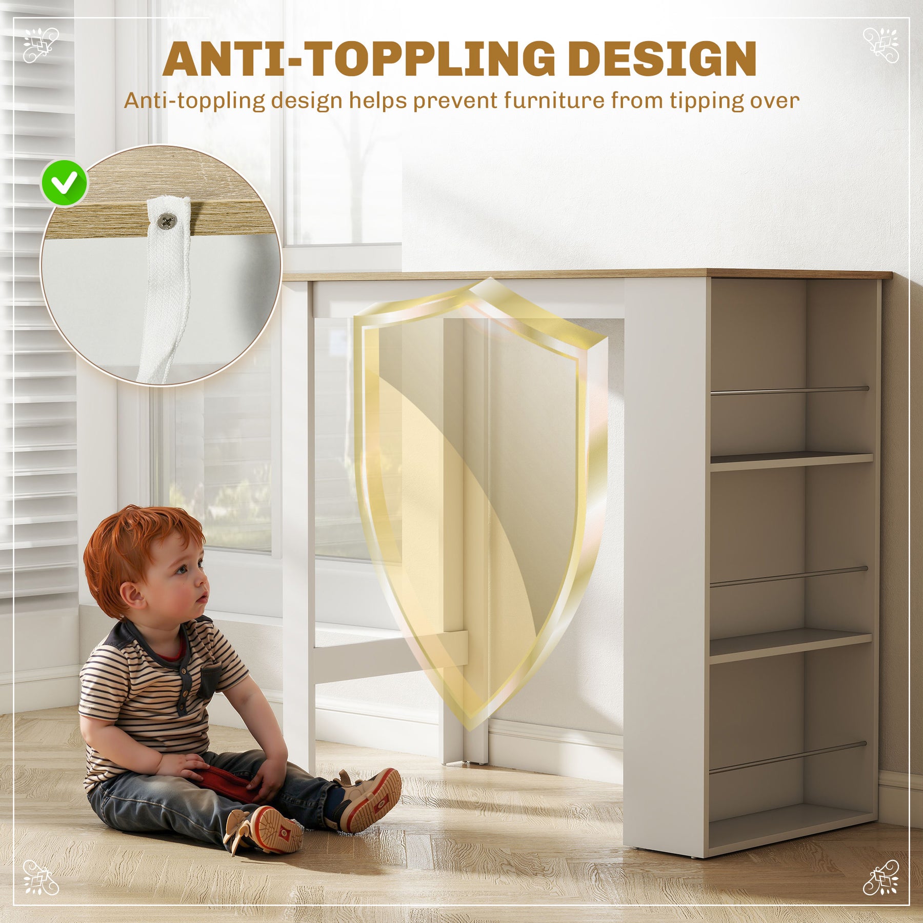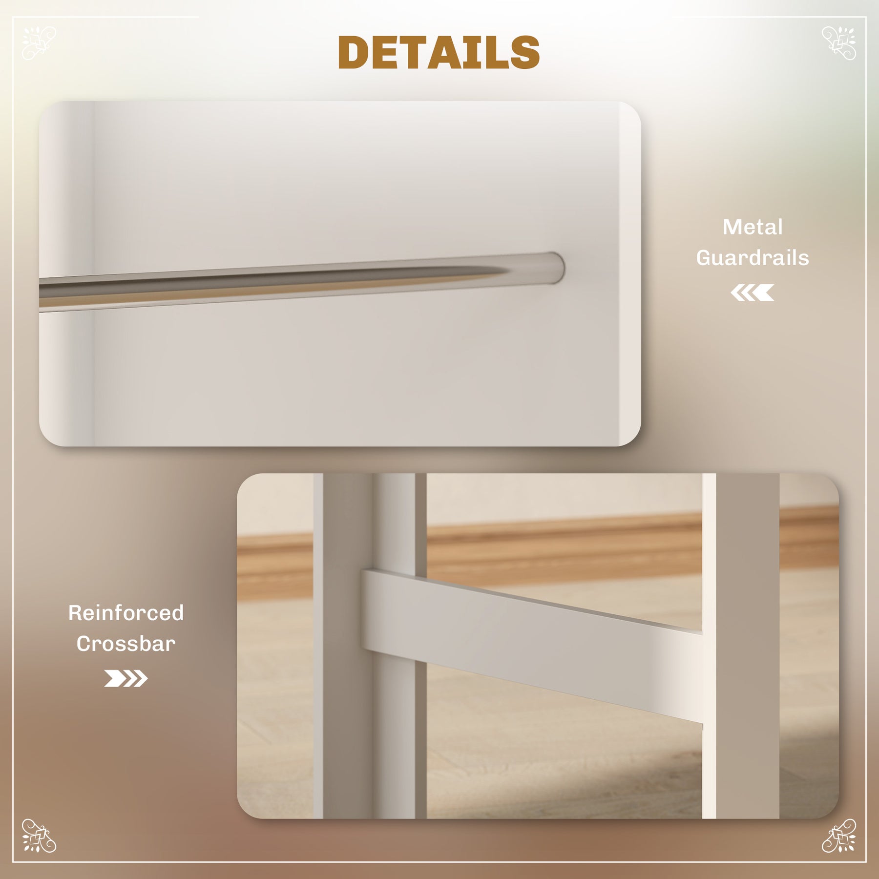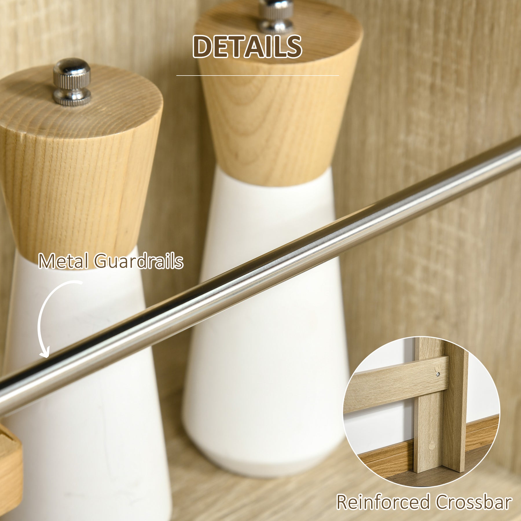 - • The open shelves are armed with side guardrails, preventing items from falling out