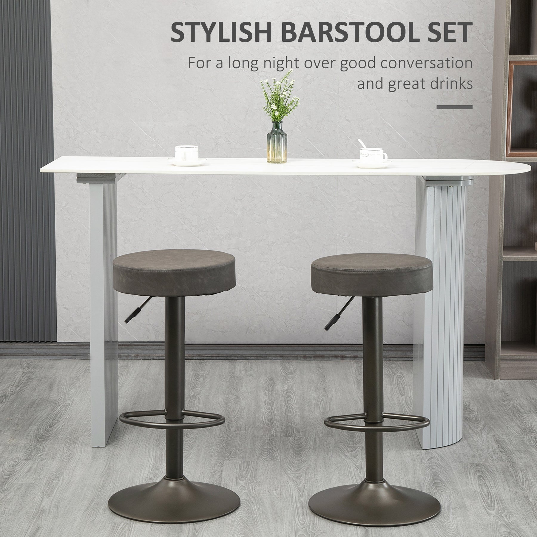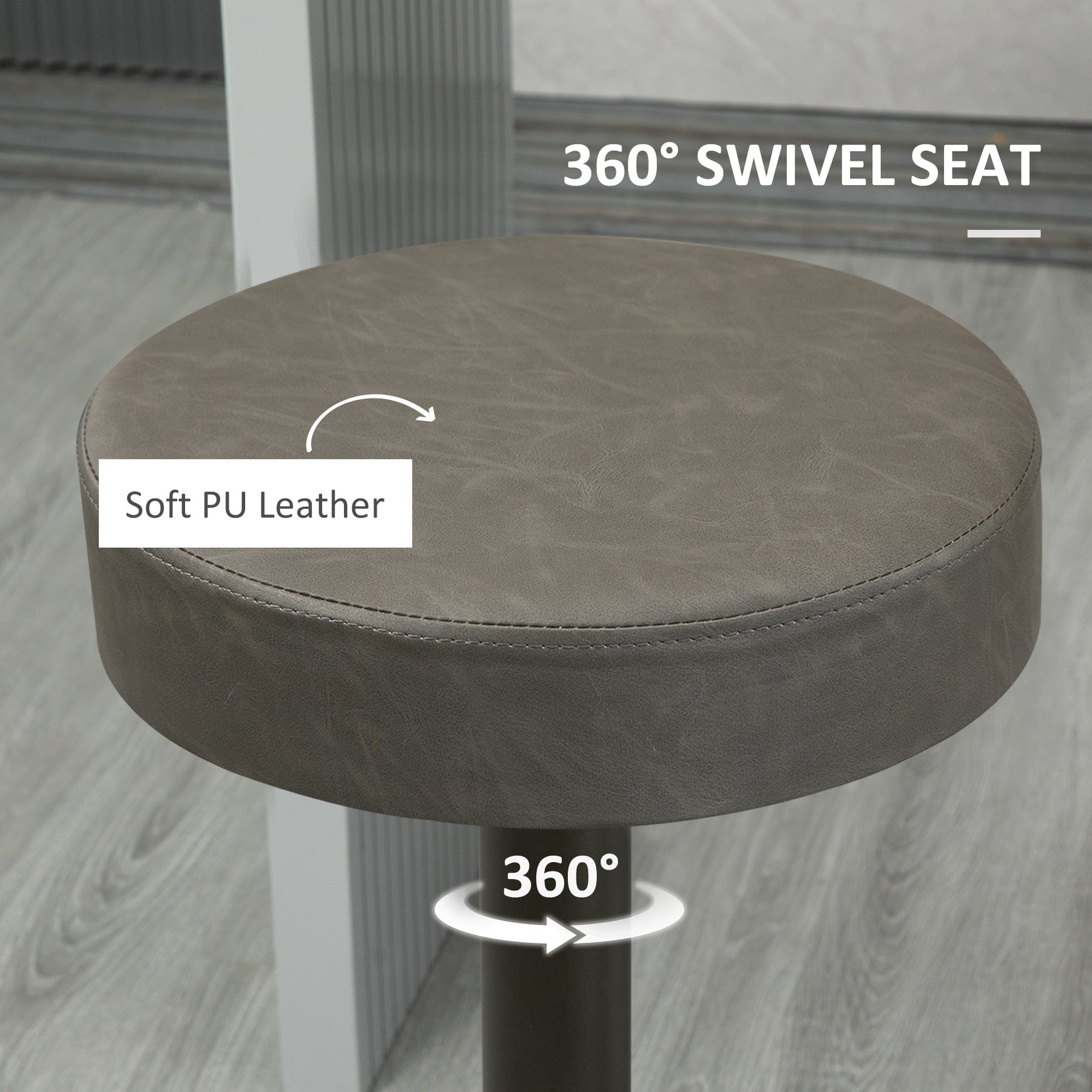 Want to refresh your home style? It's easy with this HOMCOM bar stool set! The leather upholstery adds an elegant touch, while the soft padding ensures comfort. The 360° swivelling, backless design, and adjustable height make it easy to adjust and move the high chairs to your needs. The wide base provides optimal balance and stability, allowing you to enjoy every moment of relaxation.