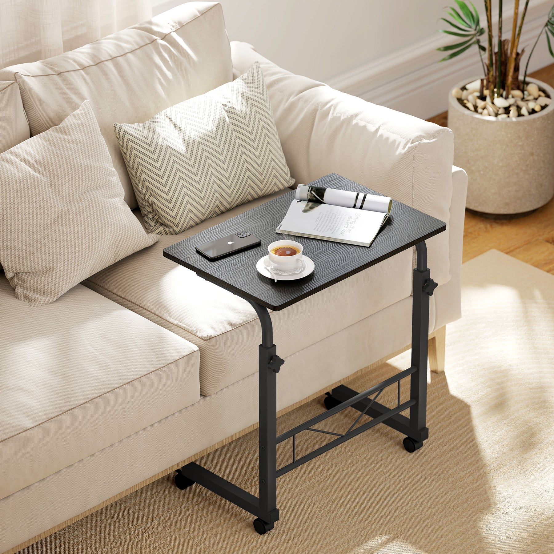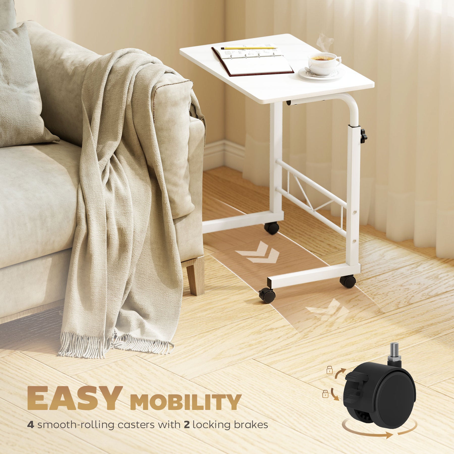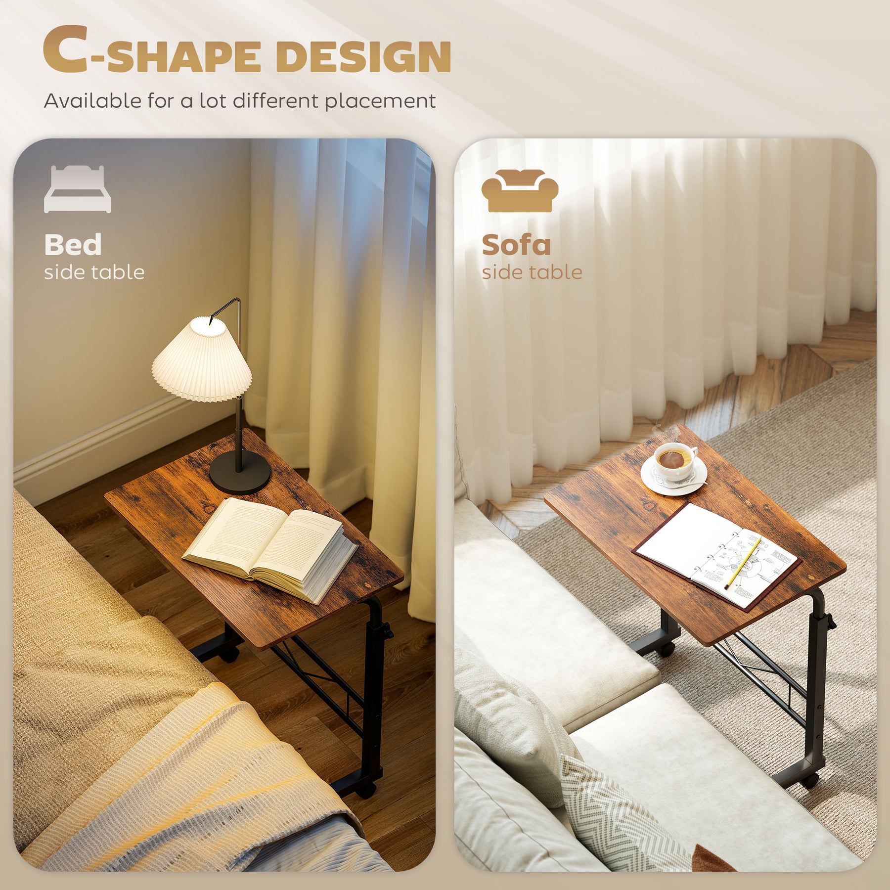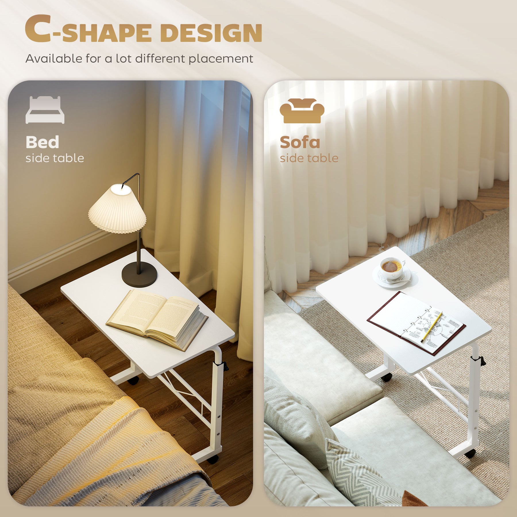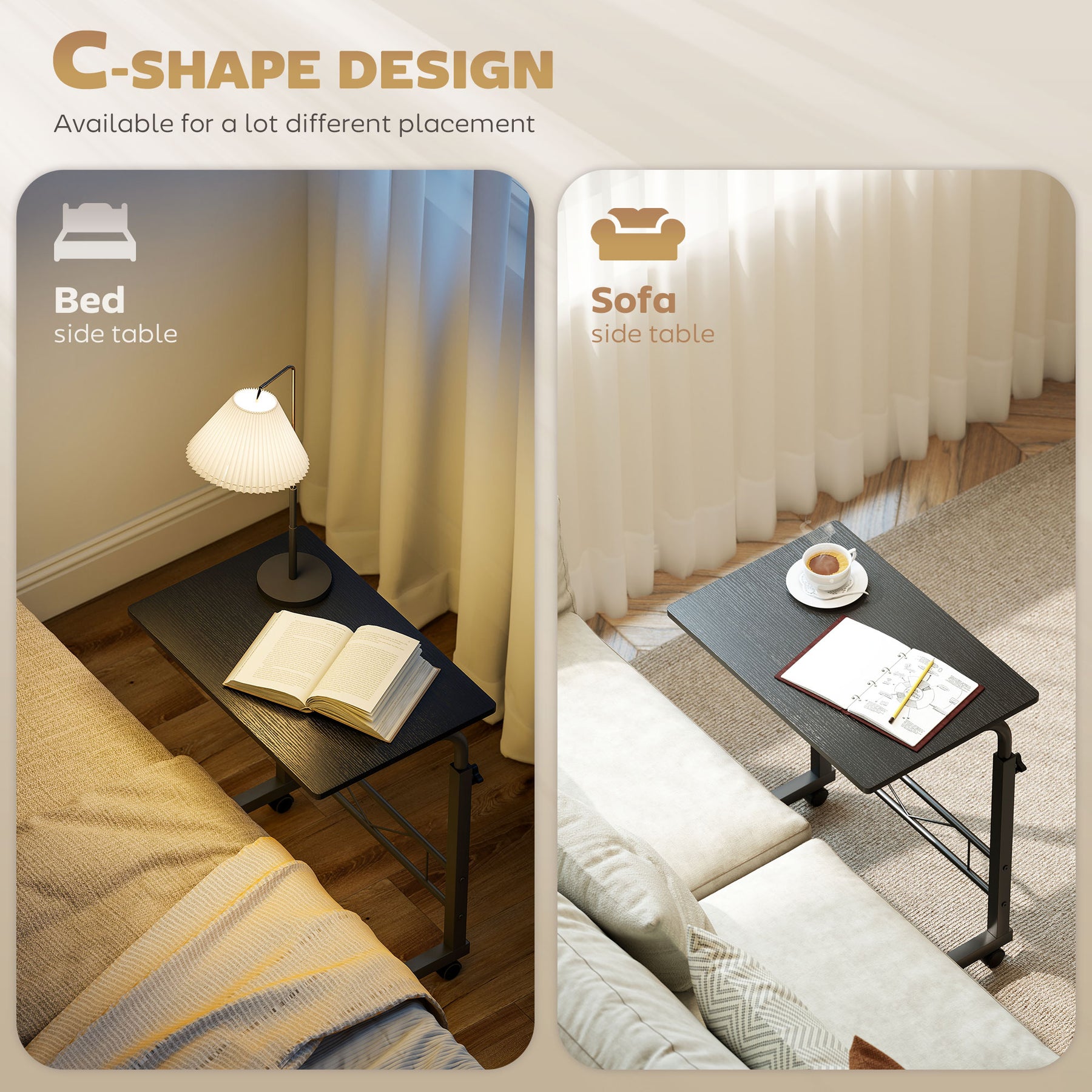 Need a practical table to store your daily essentials, but also have limited space within your home? This simple and classic mobile side table from HOMCOM will be an optimal choice for you. The unique C-shaped design of this desk makes it great for various occasions. It can be a bedside table, sofa side table, mini bar cart, mobile garden etc. Choose this quality and cost-effective table and enjoy the convenience and flexibility.