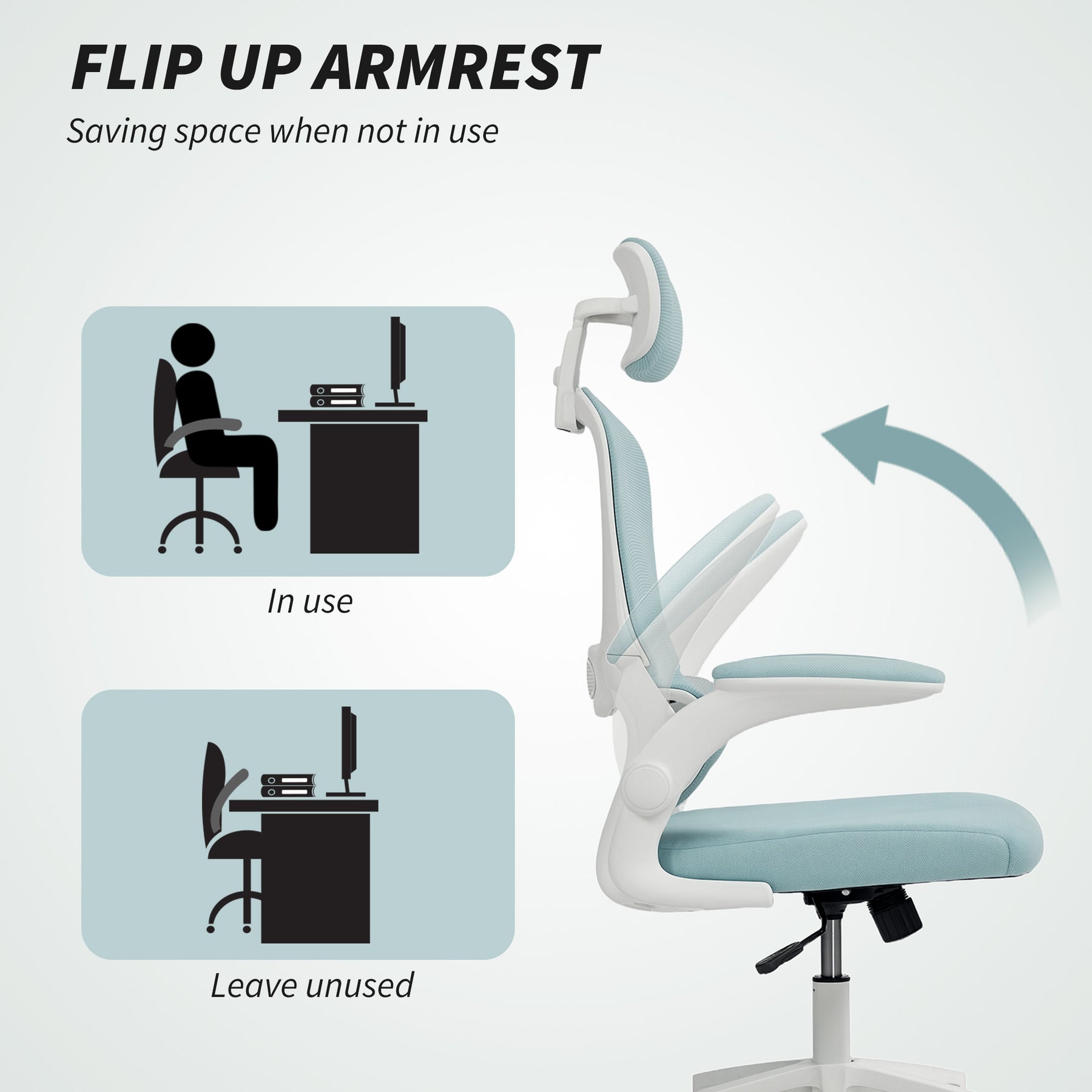 Long days at your desk often lead to nagging back pain and a cluttered room. This constant discomfort and lack of space can drain your focus. The HOMCOM ergonomic office chair changes that. Its dual-back design flexibly supports your lumbar and upper back, while the adjustable headrest cradles your neck. When you're done, flip up the arms to slide this desk chair neatly away, reclaiming your space and restoring your peace of mind.
