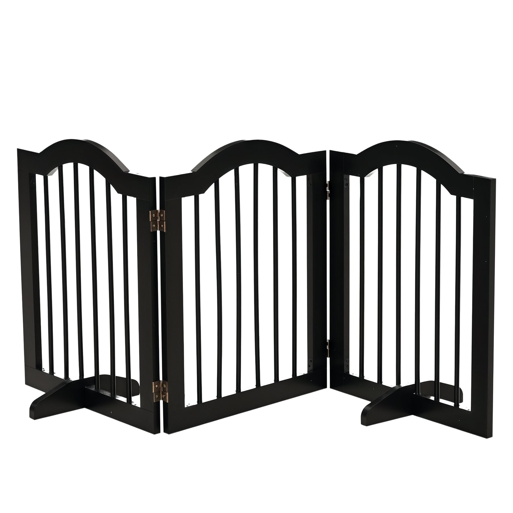 PawHut pet gates for dogs are a great way to keep your pets in an area while matching your home's style and modern design. This door has three flexible panels secured with hinges, which you can mould into different sizes, suitable for areas of various sizes. It has a double-sided folding system, allowing U/Z folding for easy storage. Constructed of MDF, suitable for daily use.