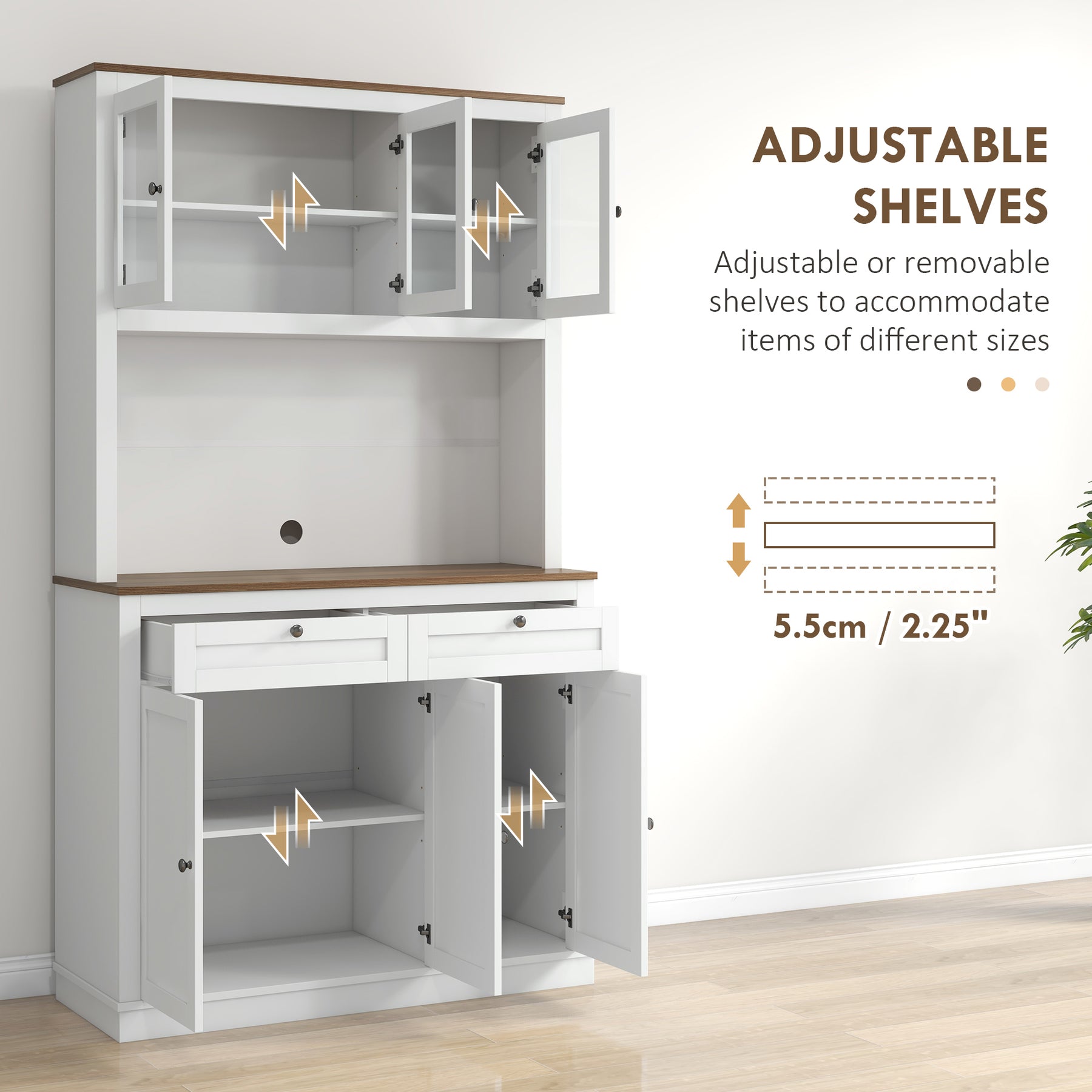Maximize your space with the HOMCOM kitchen pantry storage cabinet. Its eight compartments and two drawers neatly store everything from dishes to silverware, while adjustable shelves make room for larger items. The chic design with glass doors and metal knobs enhances any room, from the kitchen to the entryway. Plus, enjoy peace of mind with the anti-tip feature.
