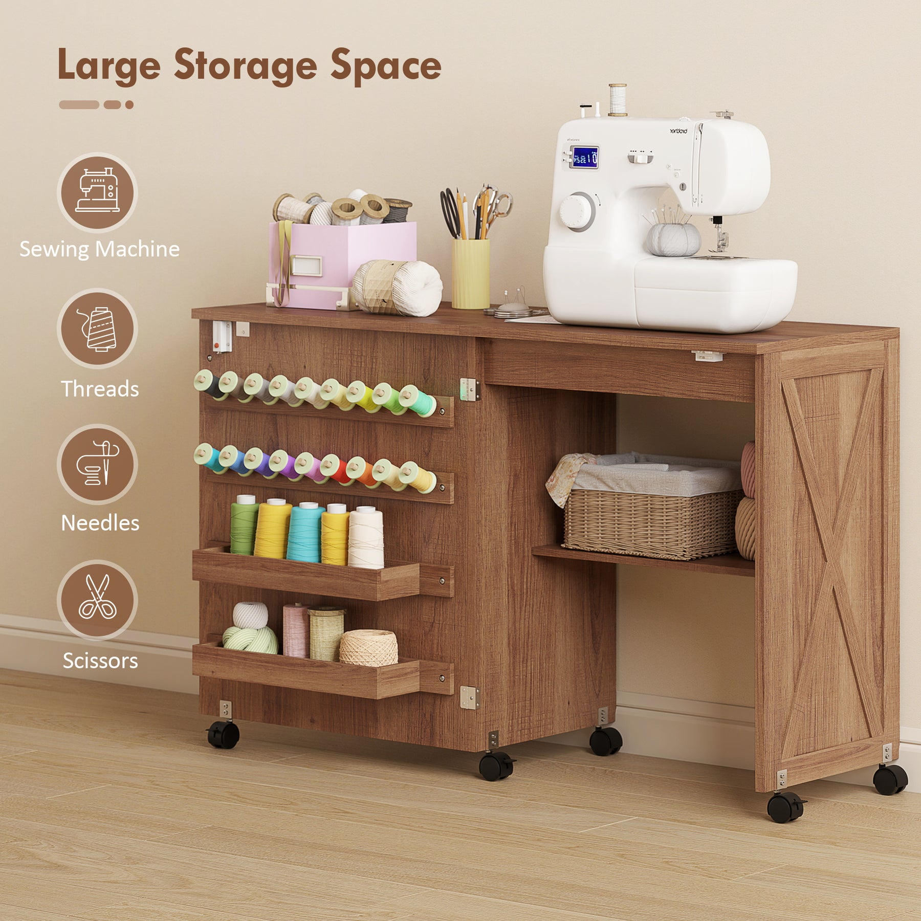 Struggling with a cluttered creative corner and limited room? Your passion for sewing shouldn't be confined by a lack of space or a wobbly, disorganized setup. The HOMCOM folding sewing table transforms your area. Unfold it for a spacious craft table that doubles as a computer desk, then neatly fold it into a compact cabinet that works a side table. With built-in storage and lockable wheels, your organized, mobile creative studio is always ready for your next inspiration.
